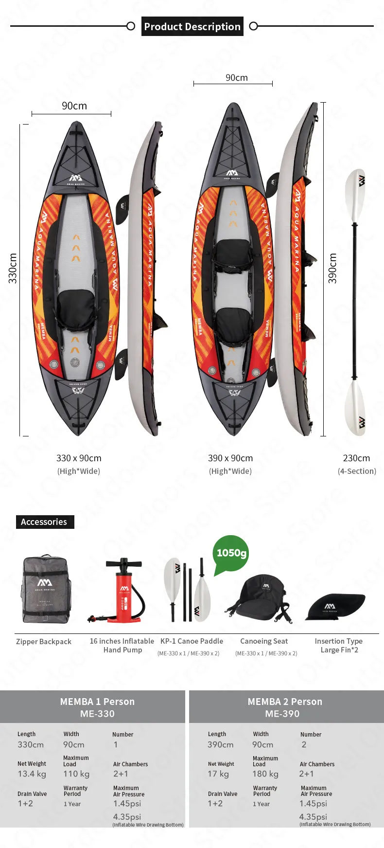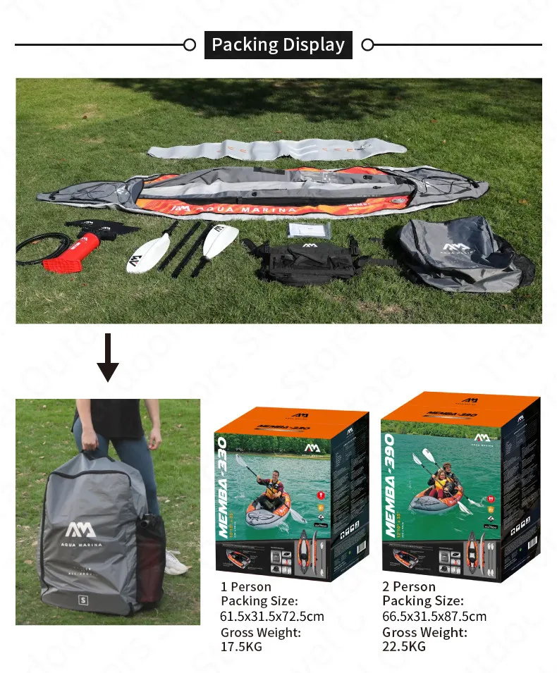 Вспомогательное оборудование: KP-1 каное/застежка-молния рюкзак/16 дюймов надувной ножной насос/каноэ сиденья/вид вставки Большой плавник * 2