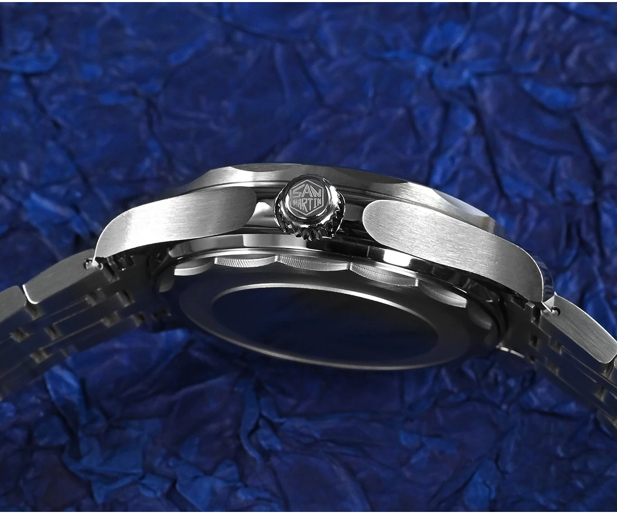 Корона: Завинчивающаяся заводная головка с Сан-Мартин шестиугольник логотип
