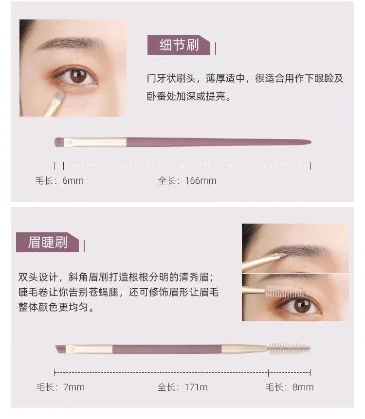Кисть для пудры, кисть для придания блеска, кисть для придания формы, кисть для румян, кисть для затенения, кисть для теней, кисть для теней, кисть для шелкопряда, угловая кисть для бровей, кисть для ресниц