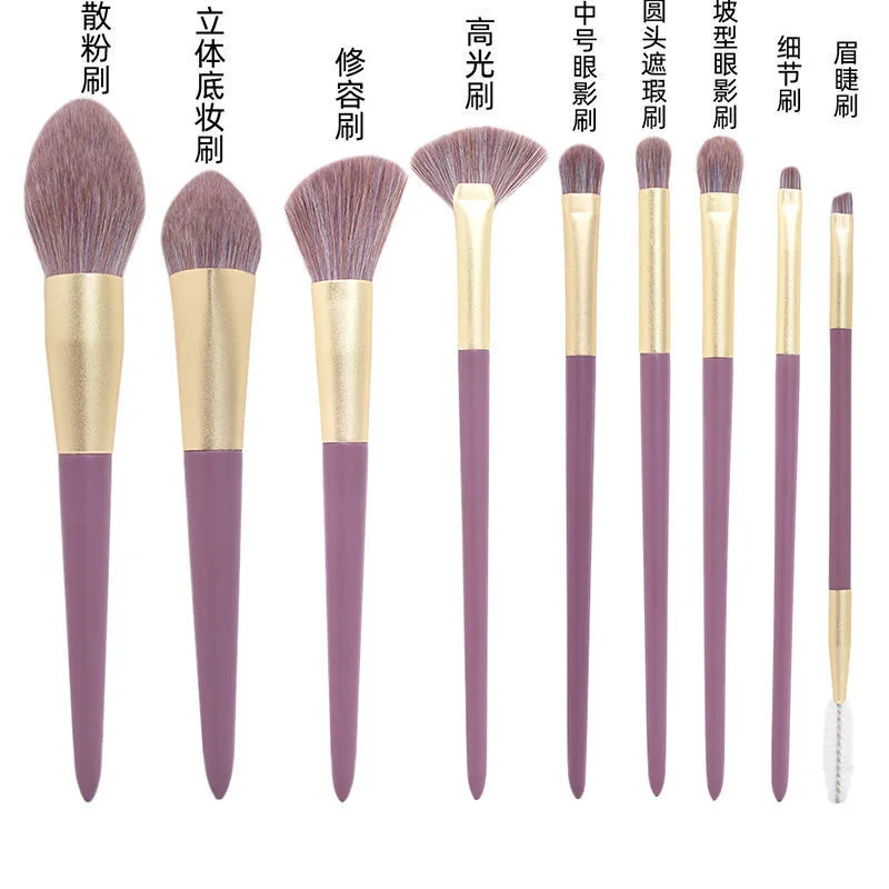 9 шт. милые кисти для макияжа Набор фиолетовых мягких теней для век кисть для бровей Косметика основа для макияжа Румяна макияжные кисти для контура инструмент для красоты
