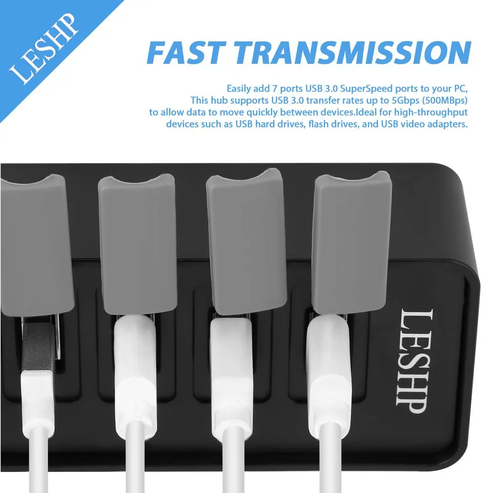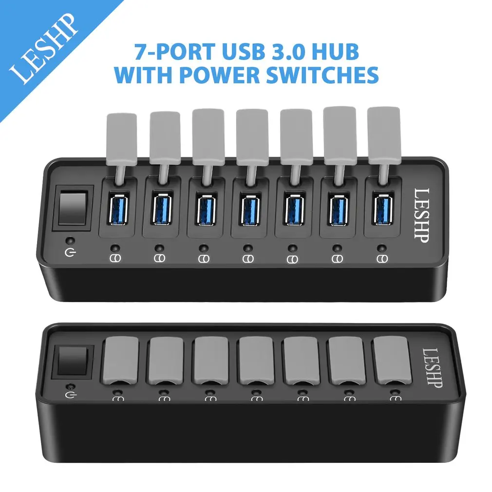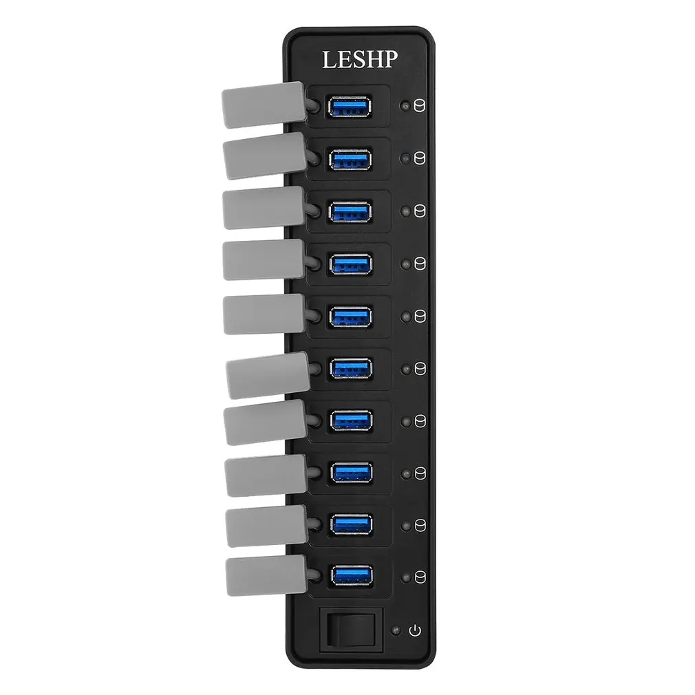10 портов USB 3,0 концентратор Высокоскоростной 5 Гбит/с USB 3,0 концентратор данных разветвитель с светодиодный и переключатель внешний адаптер питания для ПК ноутбука США вилка