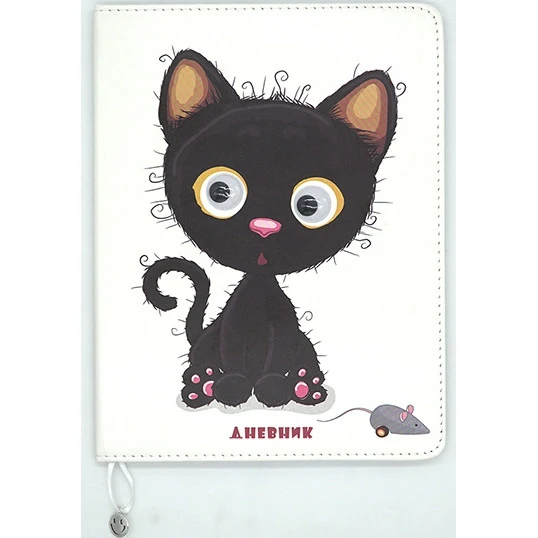 Дневник школьный с универсальным блоком для учеников 1-11 классов. Размер: 170x215 мм. Количество листов: 48. Внутренний блок: офсет, плотностью 65 г/м2. Мягкий переплет. Линовка: светло-коричневая. Блок универсальный, включает 36 учебных недель. Содержит справочный материал по математике, русскому языку, алгебре и геометрии. Форзац с печатью. Обложка: интегральная из искусственной кожи, полноцветная печать, аппликация глазки. Прошивка по периметру. Скругленные уголки обложки и блока. Ляссе с металлической подвеской смайлик.