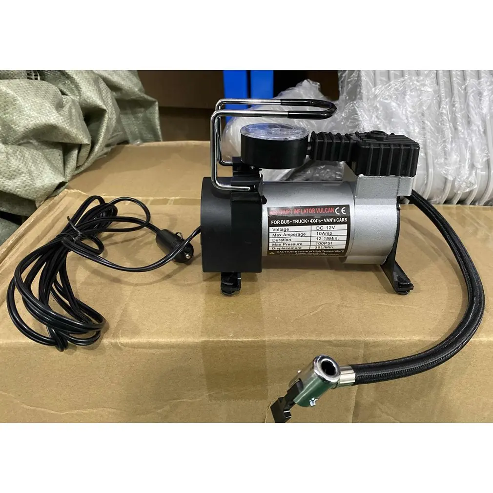 Это небольшой 12 Вольт портативный воздушный компрессор с противоскользящей ручкой.