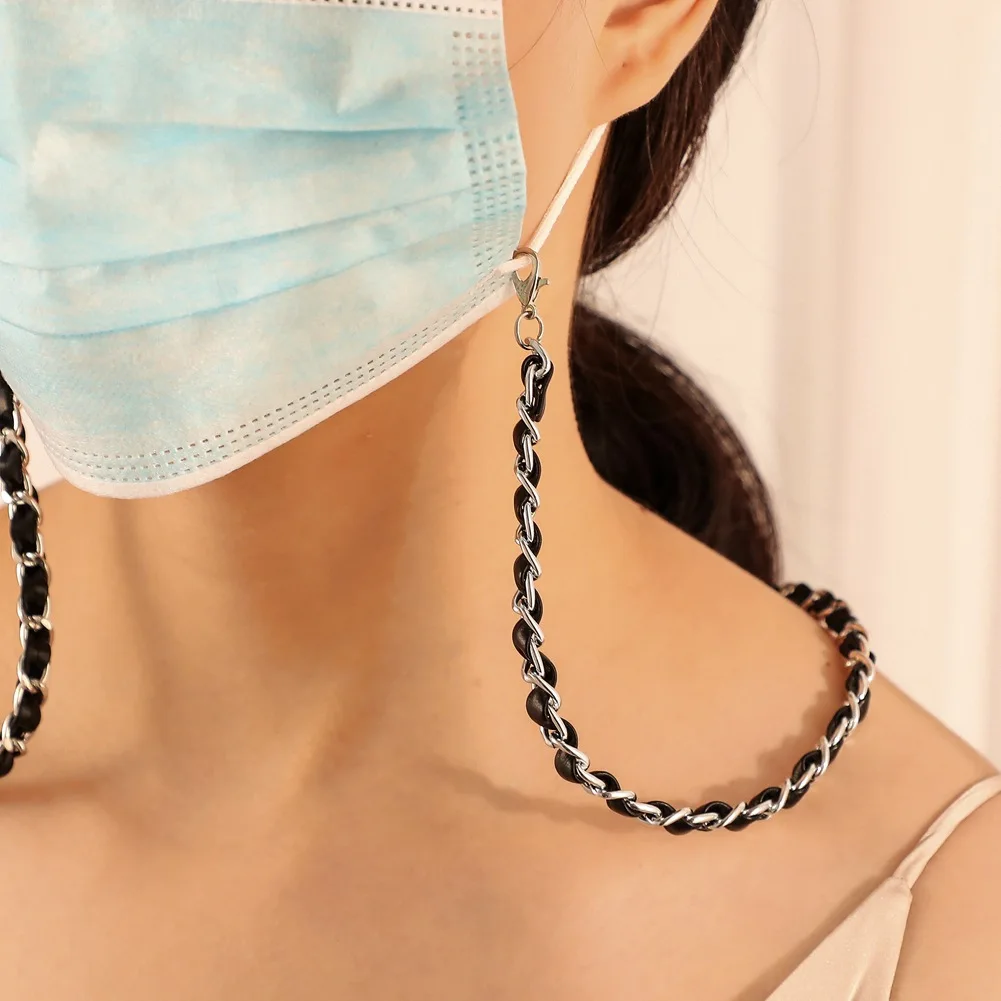 Металлические цепочки для очков и маски в стиле панк из искусственной кожи