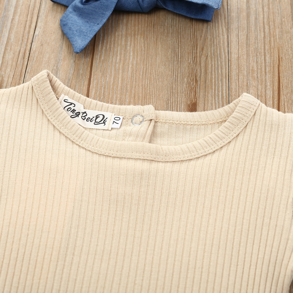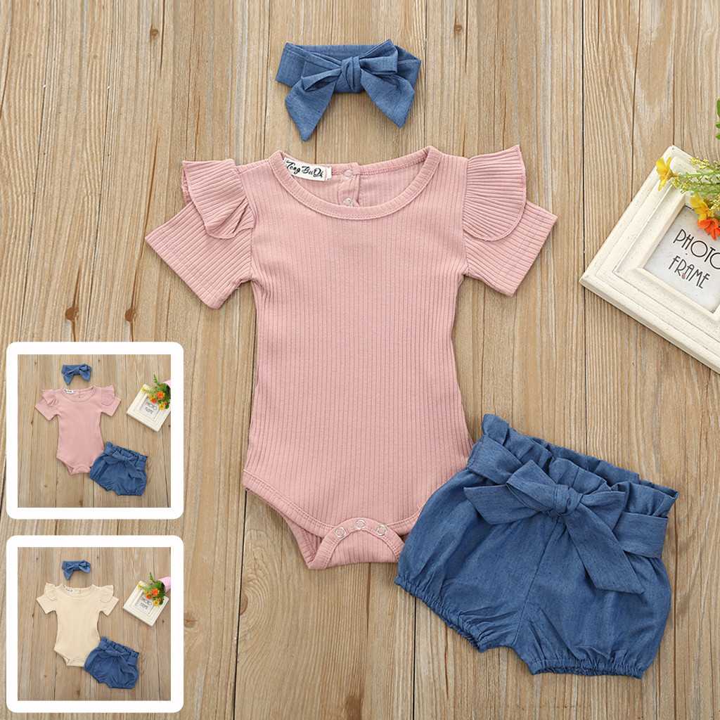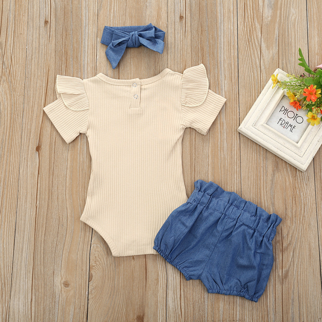 Комплект одежды из 3 предметов для маленьких девочек; Комбинезон с бантом; Джинсовые шорты
