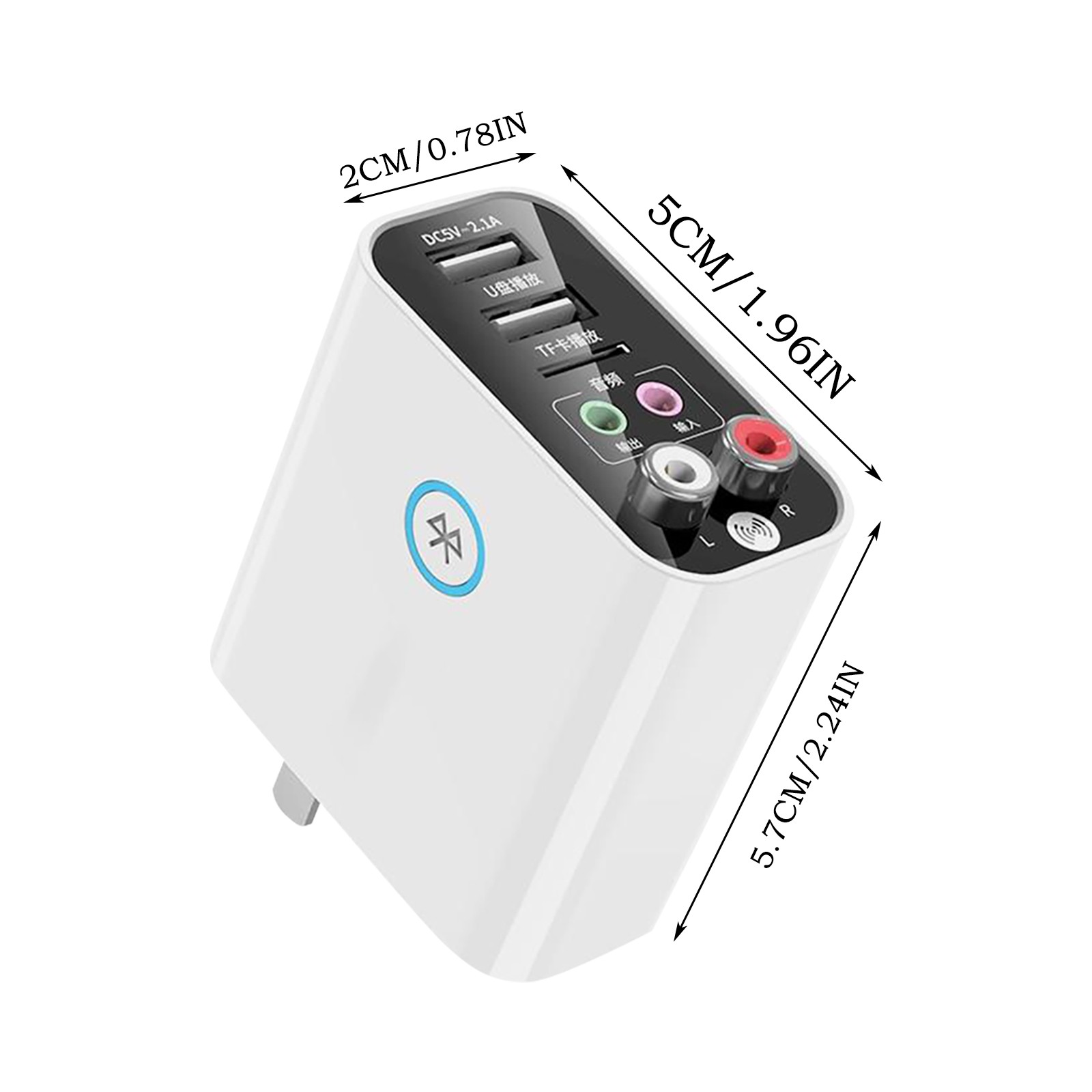 Заряжайте и передавайте файлы сразу с помощью этой вилки! Состоит из 2 usb-портов, 1 слота для карты MicroSD, 1 аудиовыхода/выхода, и левый/правый RCA гнезда Считывает и воспроизводит музыку с Карт MicroSD и USB флеш-накопителей одновременно Поддержка Bluetooth приема (RX) и Bluetooth передачи (TX) Два выхода-AUX и RCA Работает как bluetooth-передатчик для старых динамиков-Воспроизведение музыки легко с телефона через Bluetooth Поддерживает форматы аудио MP3, WAM, WAV, FLAC и APE Управление с помощью мобильных музыкальных приложений или инфракрасного пульта дистанционного управления-включение/выключение, воспроизведение, пауза, отключение звука и легко регулировать громкость Не задерживайте просмотр телевизора и прослушивание музыки с помощью Bluetooth наушников Bluetooth 5,0 (до 10 м)-быстрое и стабильное соединение Позволяет быстро заряжать 2 устройства одновременно Защищает от перегрузки по току, перенапряжения, перегрева, перезаряда и короткого замыкания Светильник-синий светильник для режима приема и красный светильник для режима передачи Вход: 110-220 В; Выход: 5 В постоянного тока, 2,1 А Размер: 57x50x20 мм Материал: АБС-пластик Включает в себя. 1x преобразователь Bluetooth + 1x кабель для передачи данных + 1x пульт дистанционного управления