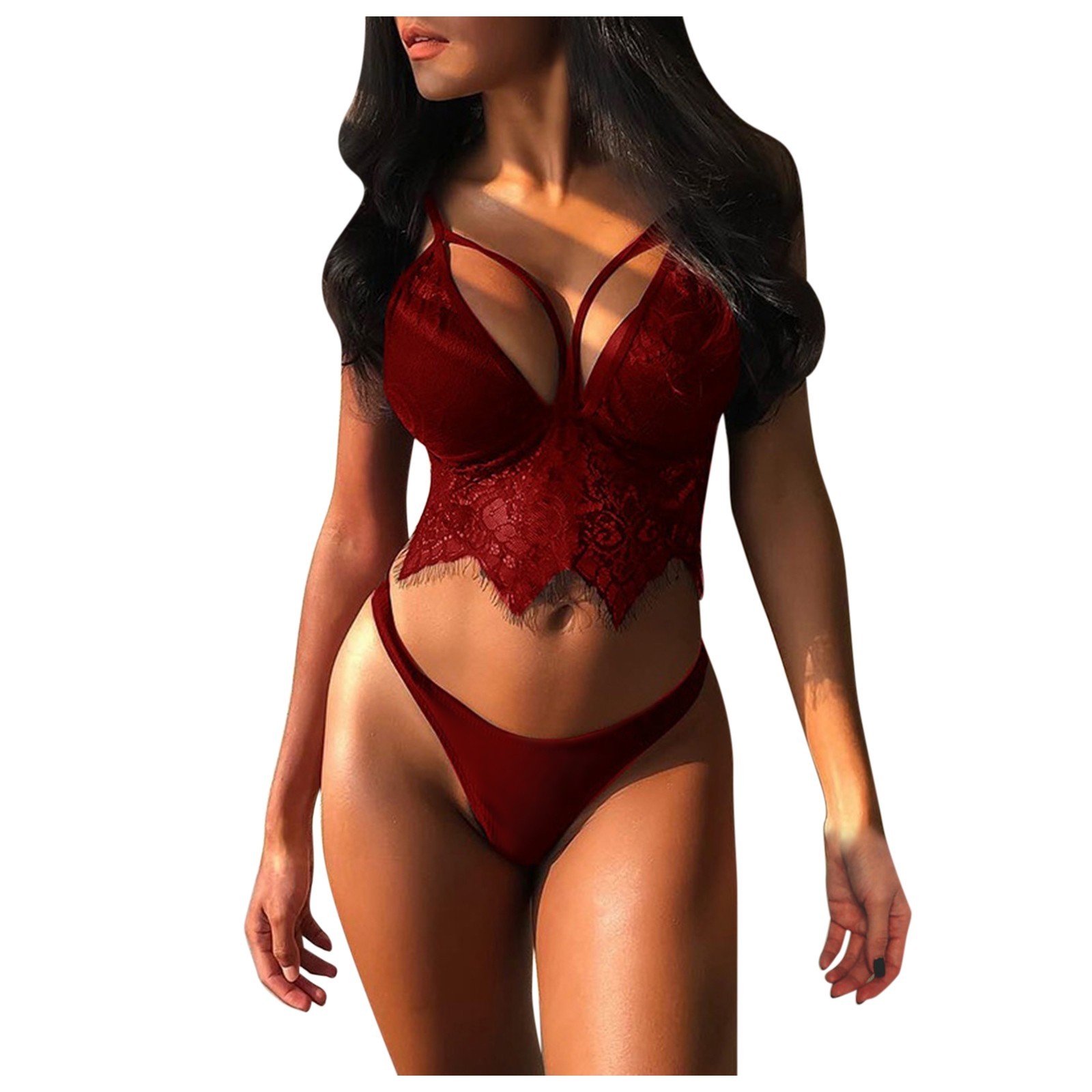 Женское сексуальное кружевное белье, ночное белье, бюстгальтер и трусики, комплект с открытой спиной, пижамы