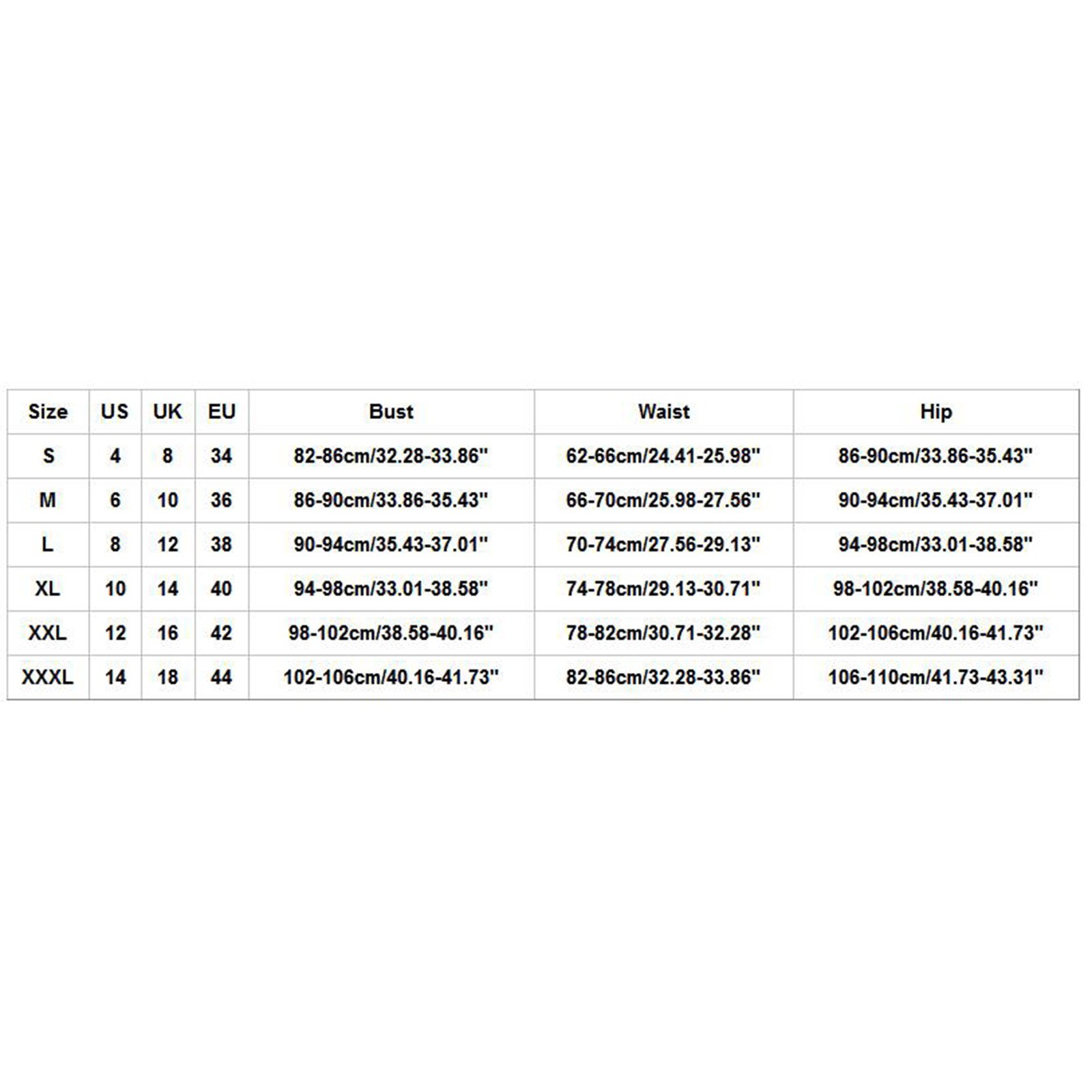 Размеры США Великобритания ЕС Бюст Талия Бедра S 4 8 34 82-86 см/32,28-33,86" 62-66 см/24,41-25,98" 86-90 см/33,86-35,43" М 6 10 36 86-90 см/33,86-35,43" 66-70 см/25,98-27,56" 90-94 см/35,43-37,01" L 8 12 38 90-94 см/35,43-37,01" 70-74 см/27,56-29,13" 94-98 см/33,01-38,58" XL 10 14 40 94-98 см/33,01-38,58" 74-78 см/29,13-30,71" 98-102 см/38,58-40,16" XXL 12 16 42 98-102 см/38,58-40,16" 78-82 см/30,71-32,28" 102-106 см/40,16-41,73" XХХL 14 18 44 102-106 см/40,16-41,73" 82-86 см/32,28-33,86" 106-110 см/41,73-43,31"