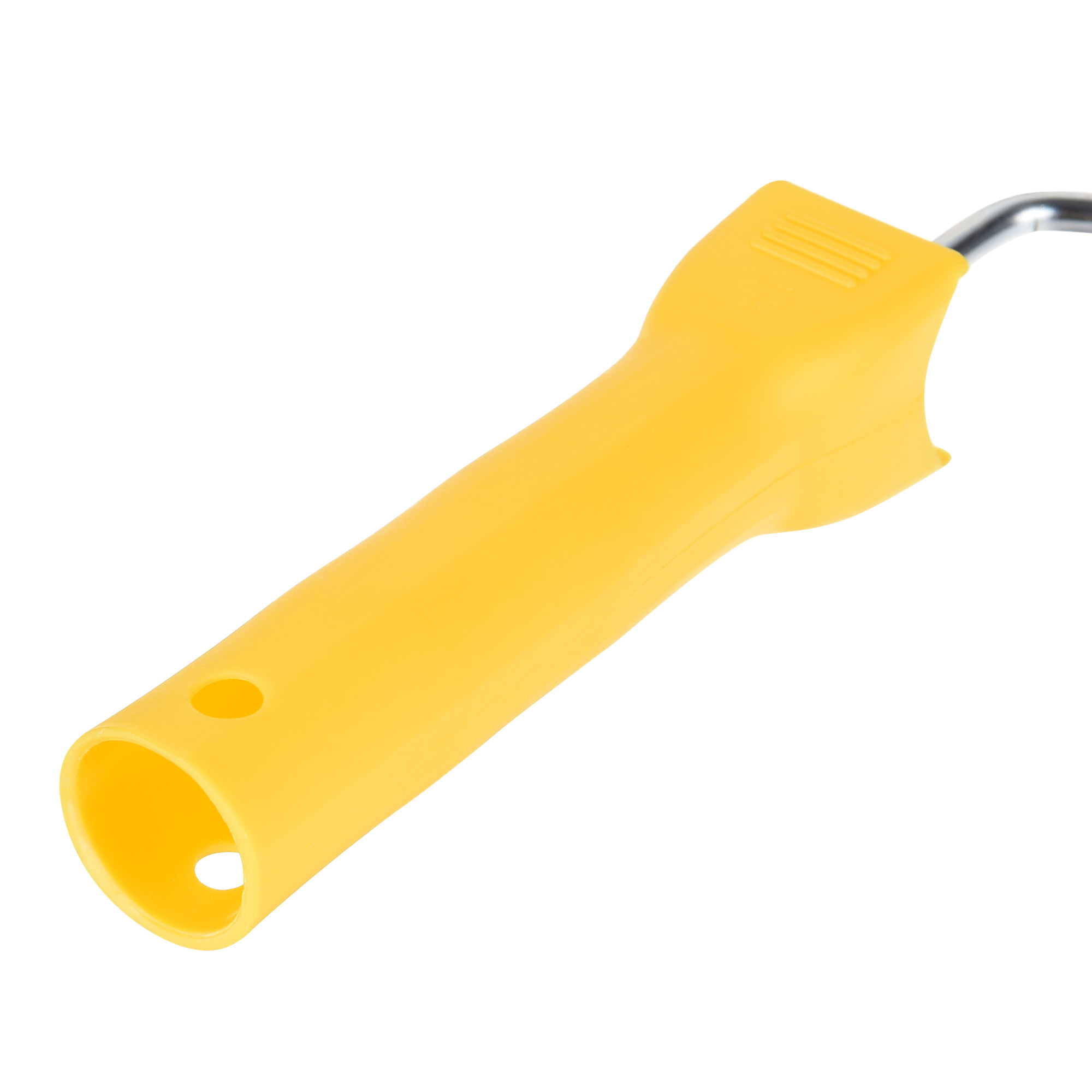 Прочная роликовая рама, не легко сгибаться и ржаветь. Пустотелая Нижняя рукоятка ролика предназначена для вставки удлинительных полюсов для окраски в высоких местах или для подвешивания на стенах, а не для использования.