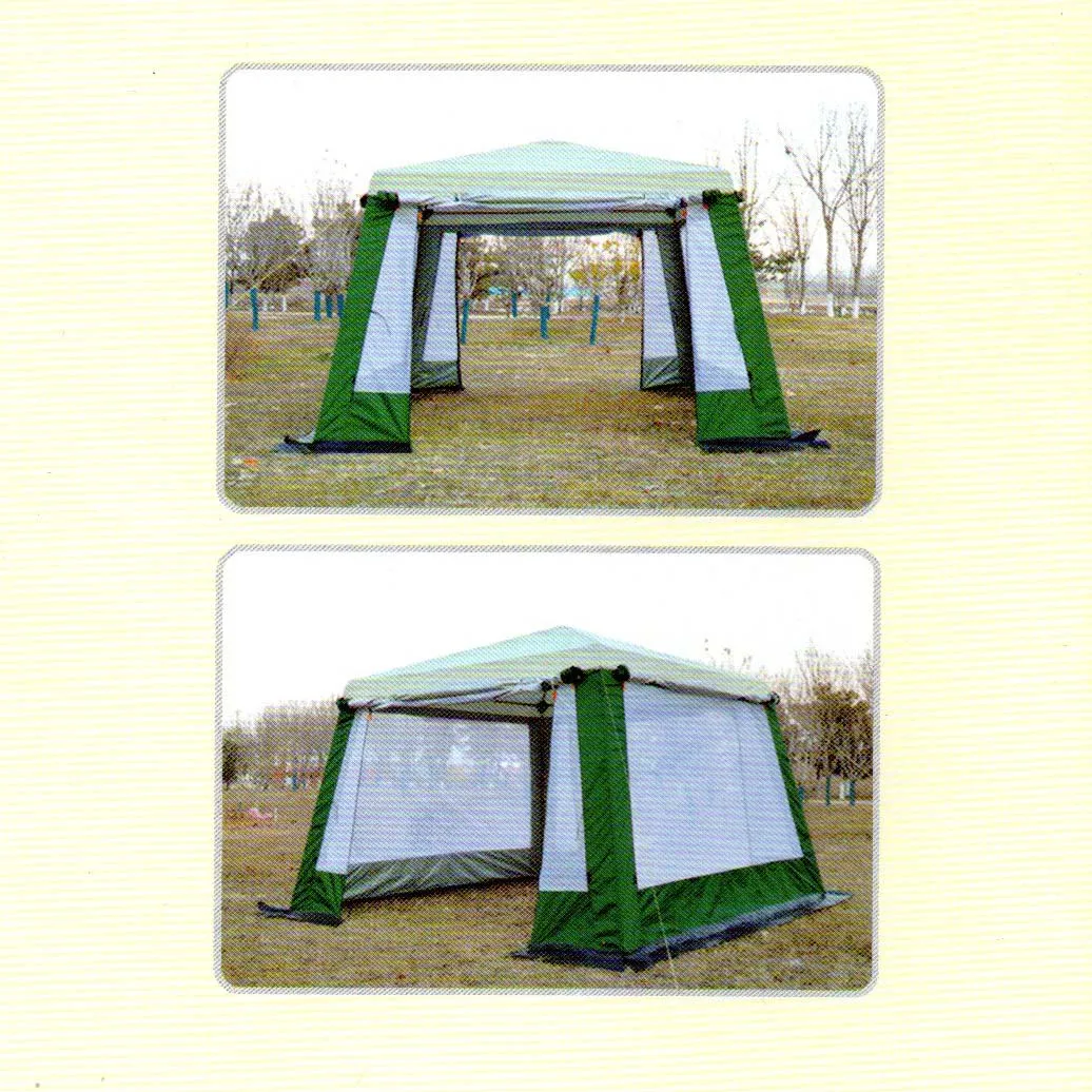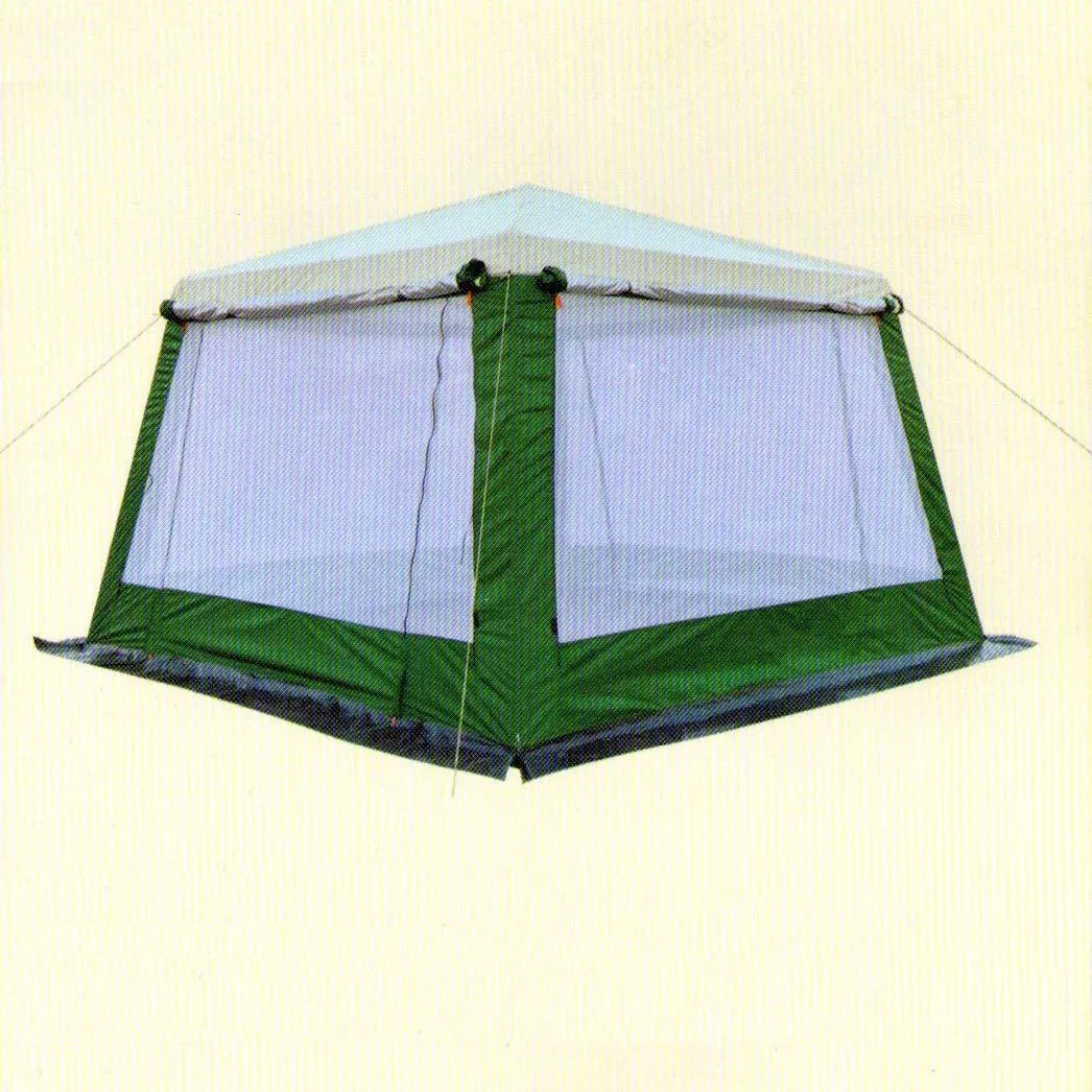 Шатер отличный вариант для размещения и отдыха на природе: можно обустроить комнату отдыха, обеденную зону или склад для хранения вещей, также шатер отлично впишется в садовый ландшафт. Данная модель имеет форму квадрата, большой размер - 320*320*245 см. Шатер сделан из качественных и надежных материалов, каркас выполнен из стальной трубки 22 мм с покрытием антикоррозионной краской. Тент сделан из POLYTAFFETA 190T 68D. Водостойкость ткани этого шатра в 2000 мм вс. и проклеенные швы гарантируют прекрасную защиту от дождя и ветра. Устойчив к воздействию ультрафиолетовых лучей. Шатер имеет два выхода, которые защищены москитными сетками и глухими стенками. В зависимости от вашего желания можно оставить все окна открытыми или закрыть нужные вам. Колечко на куполе шатра Вы можете использовать для подвески кемпингового фонаря. При необходимости этот туристический шатер можно использовать, как палатку.