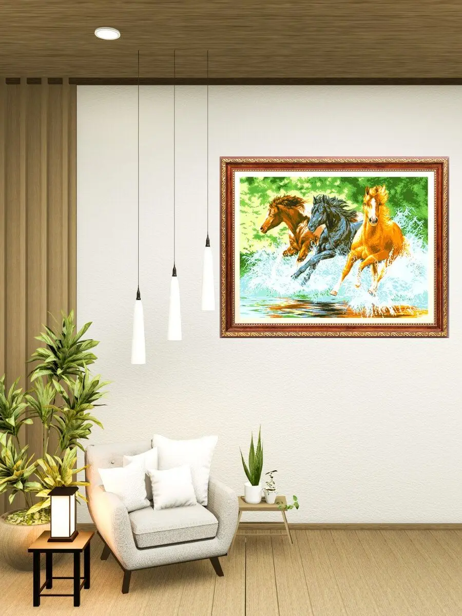 Красивый и стильный рисунок будет оригинально смотреться в интерьере вашего помещения. Вышитую картину по номерам можно оформить в багет или в рамку (в набор не входит!).