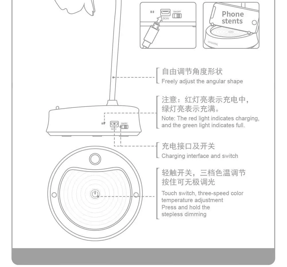 Есть мобильный телефон держатель и держатель для ручки на держатель лампы, что удобно для хранения, экономит место на рабочем столе и позволяет избежать потери мелких объектов.
