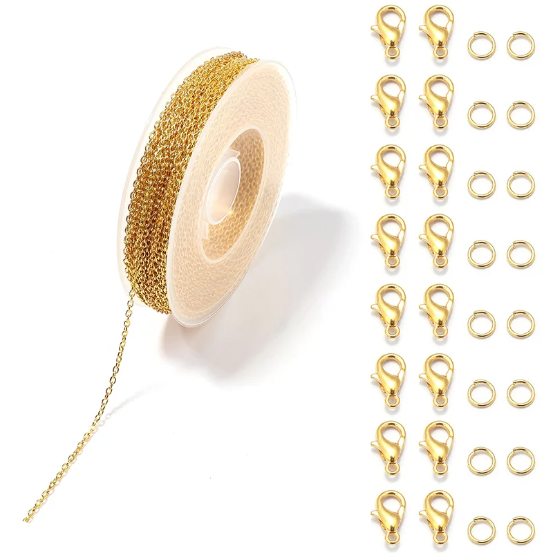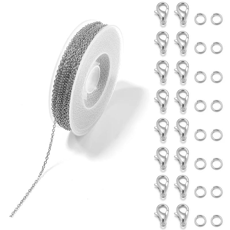 1 Набор 3 м железная кабельная цепь, цепи для оптовой продажи, звенья цепи с кольцами для прыжков, набор застежки для изготовления украшений омаров, DIY материалы для ожерелья