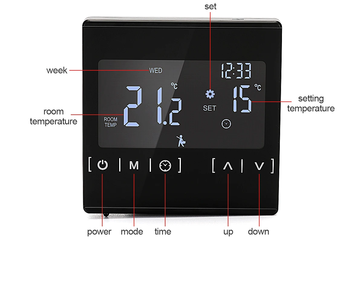 Термостат подходит для нагревательного кабеля, нагревательного коврика, нагревательной пленки и других устройств электрического отопления.