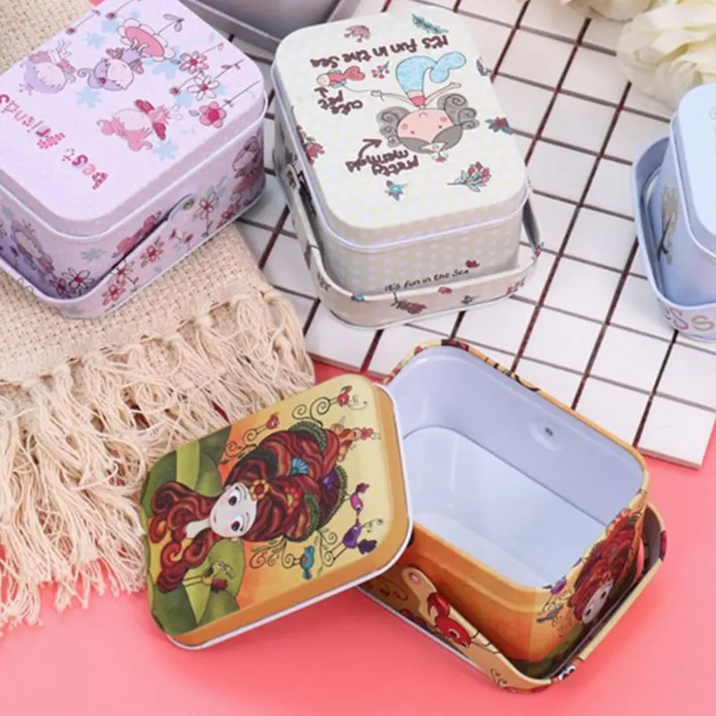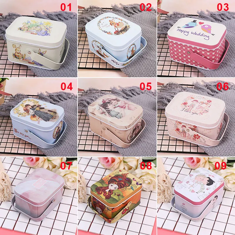 Декоративная Милая коробка конфет для печенья из мультфильма, жестяная коробка для хранения чемоданов с крышками для свадьбы, дня рождения, вечеринки, портативная жестяная подарочная коробка