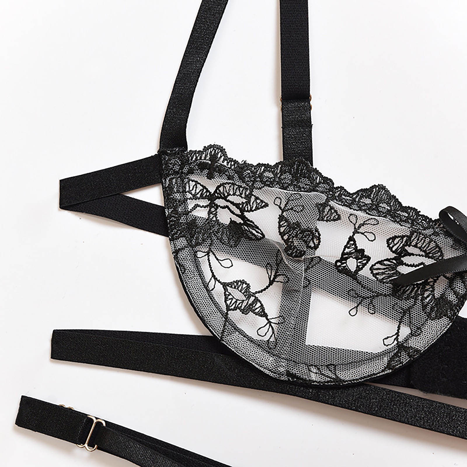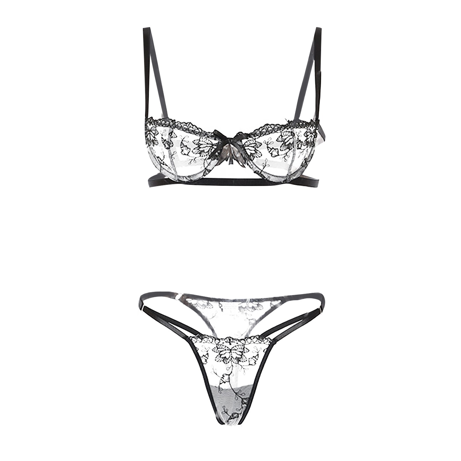 Женское сексуальное кружевное Прозрачное нижнее белье с вышивкой, костюм из двух предметов