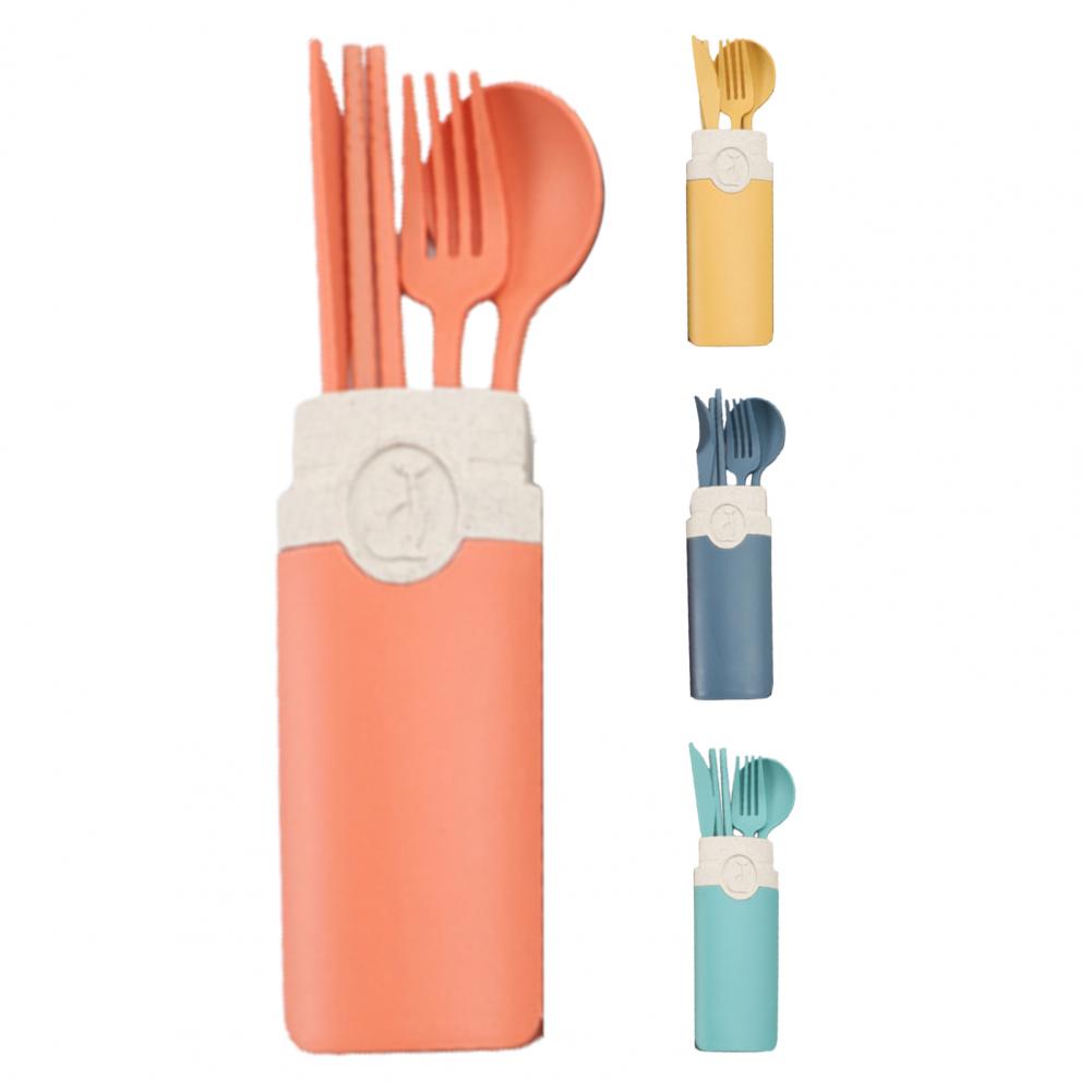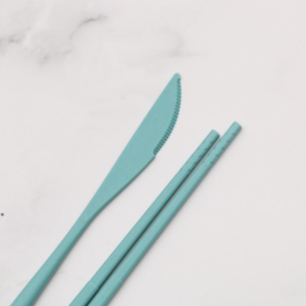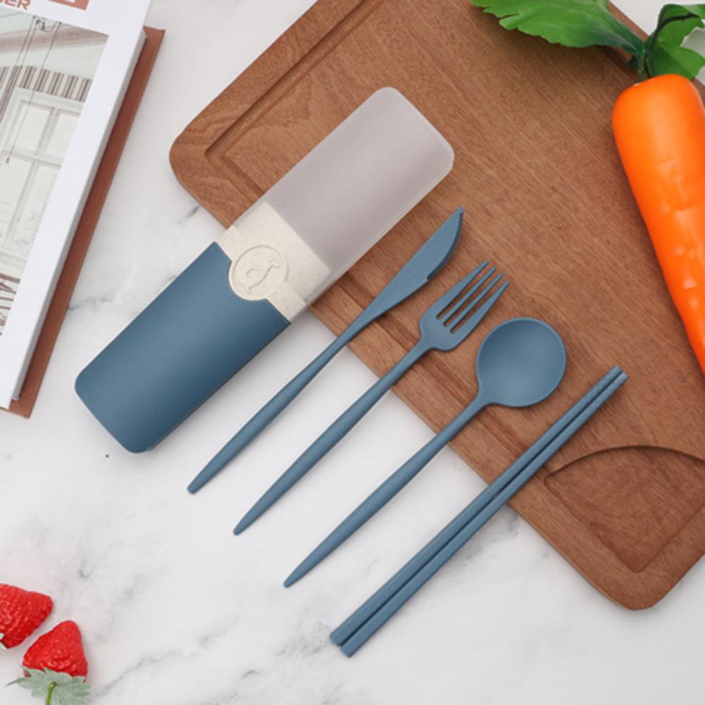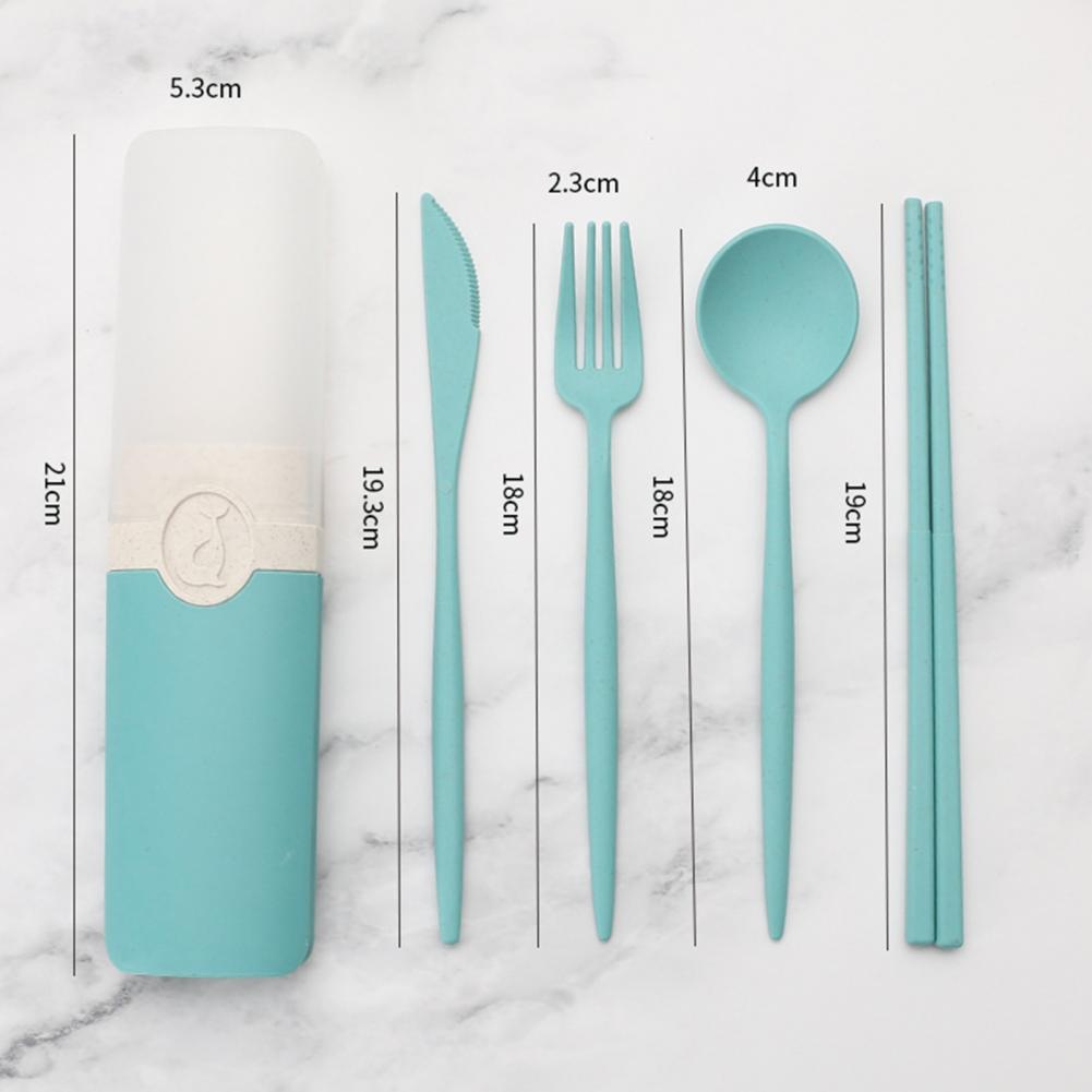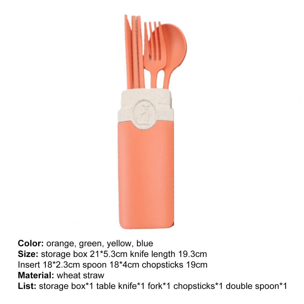 Набор столовых приборов включает ящик для хранения, резак, вилку, ложку и 1 пару палочек для еды.