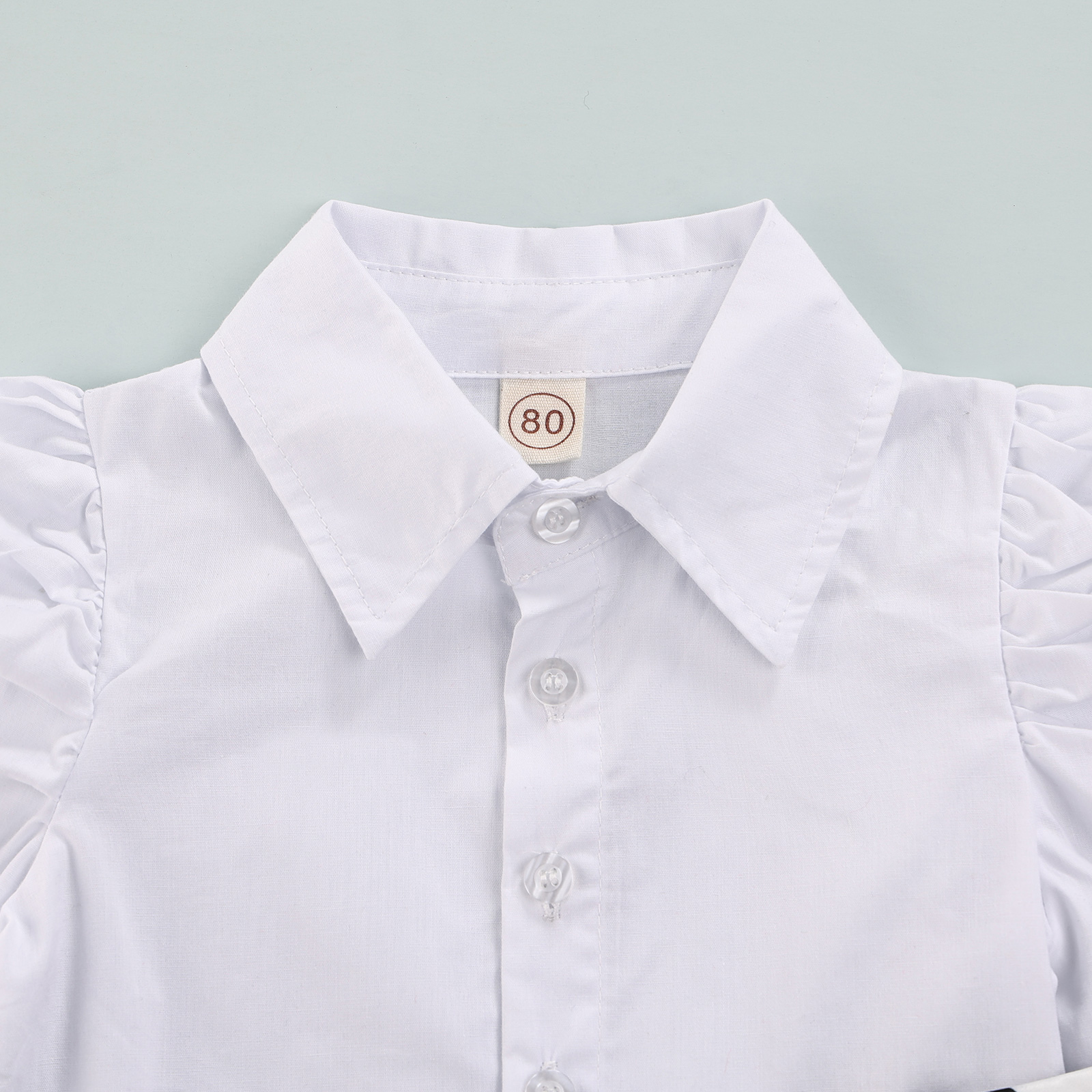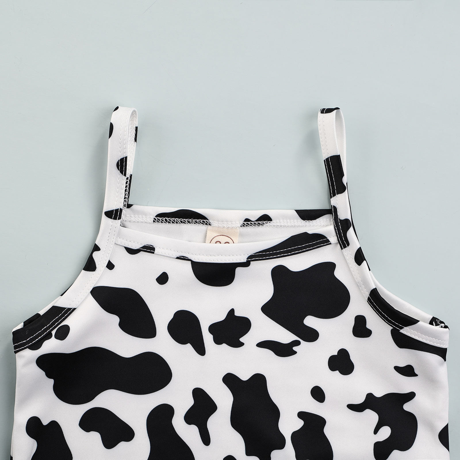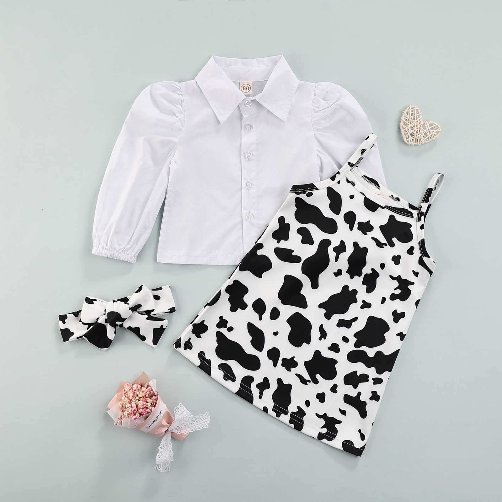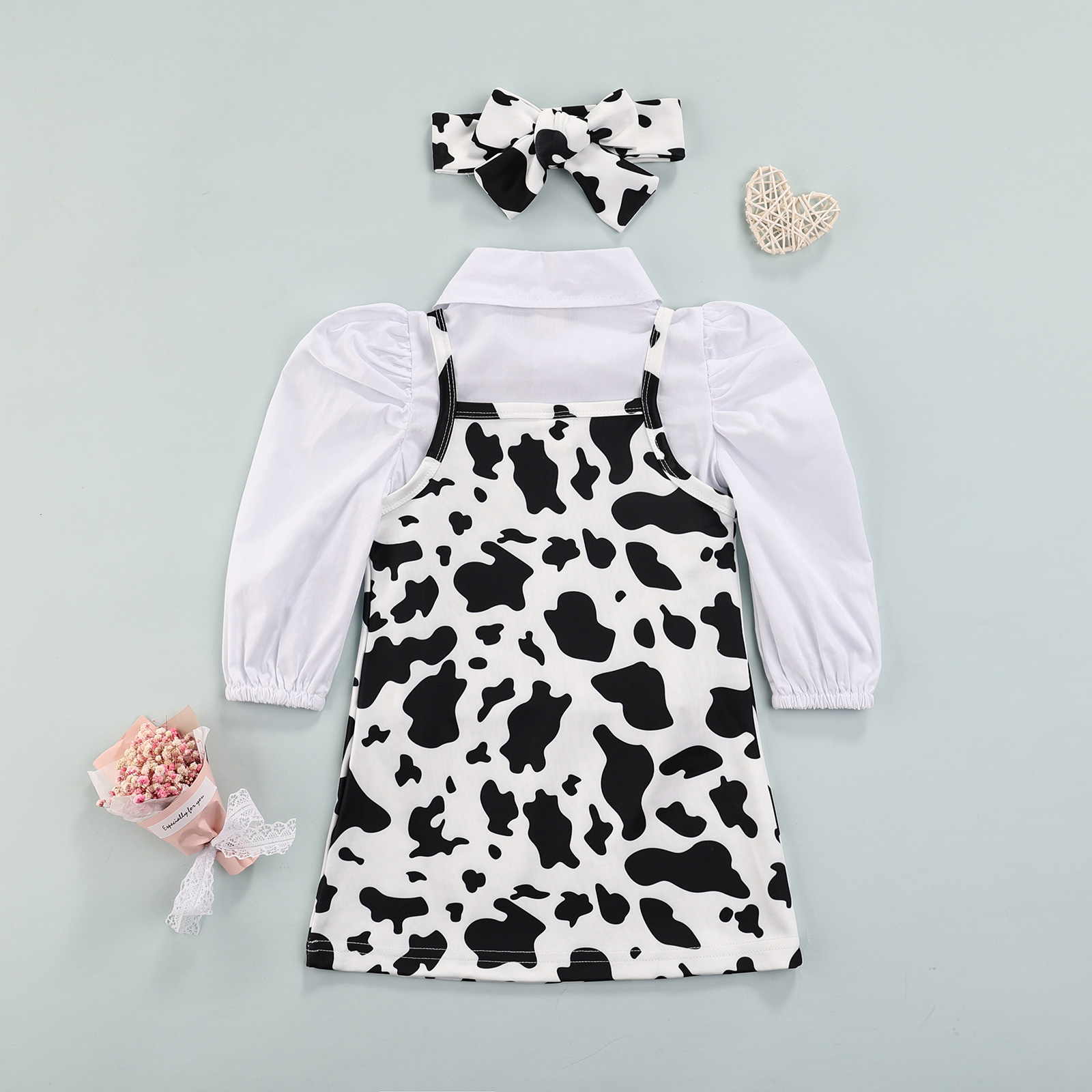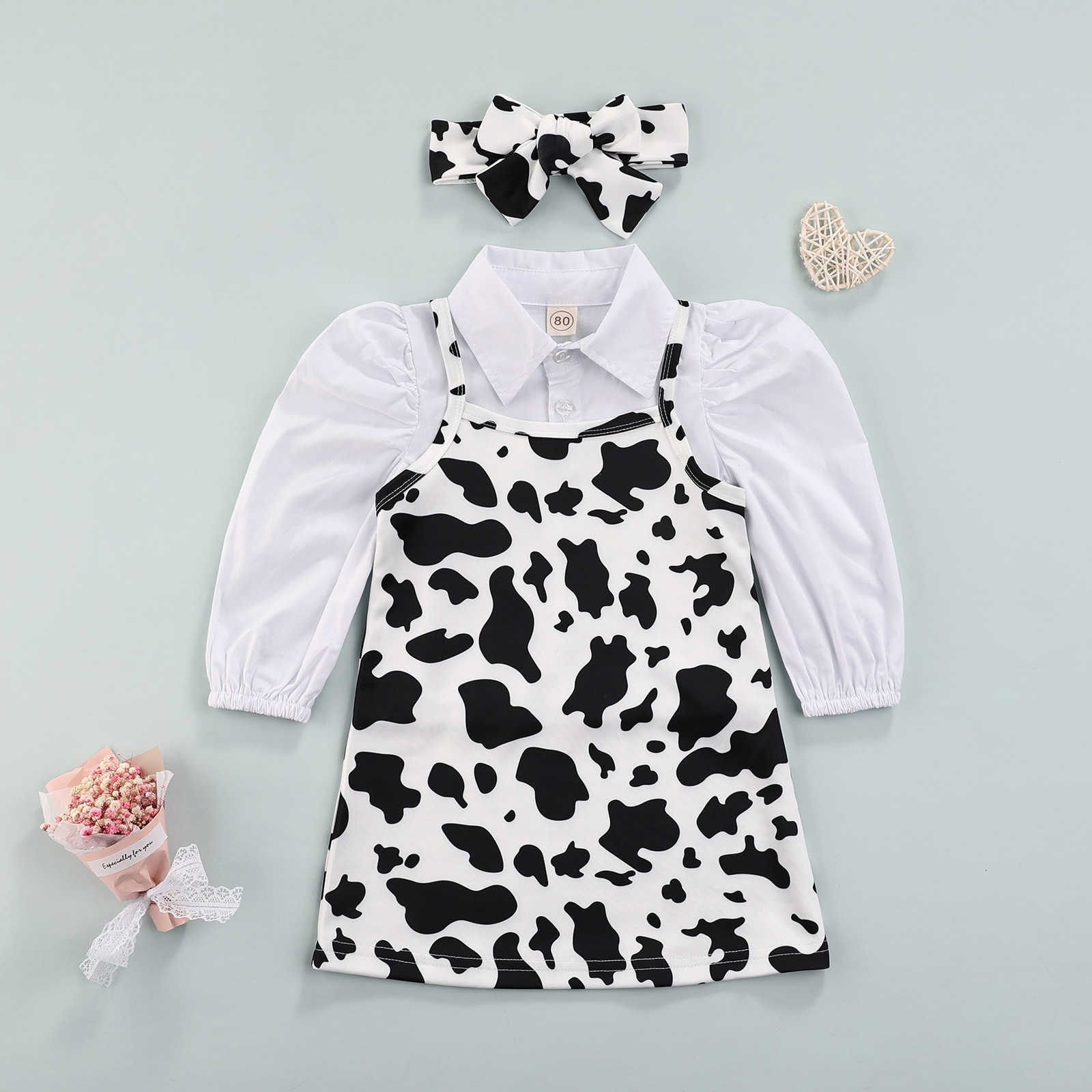 Little girls fashion long sleeve shirt and cow suspender dress & headband