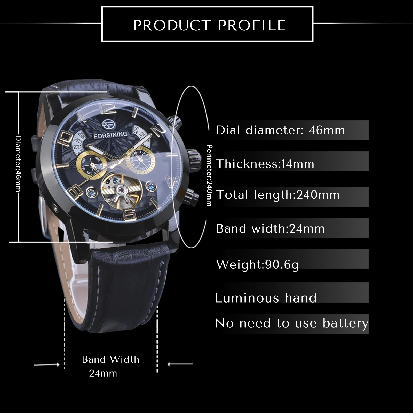-Диаметр циферблата: 46 мм