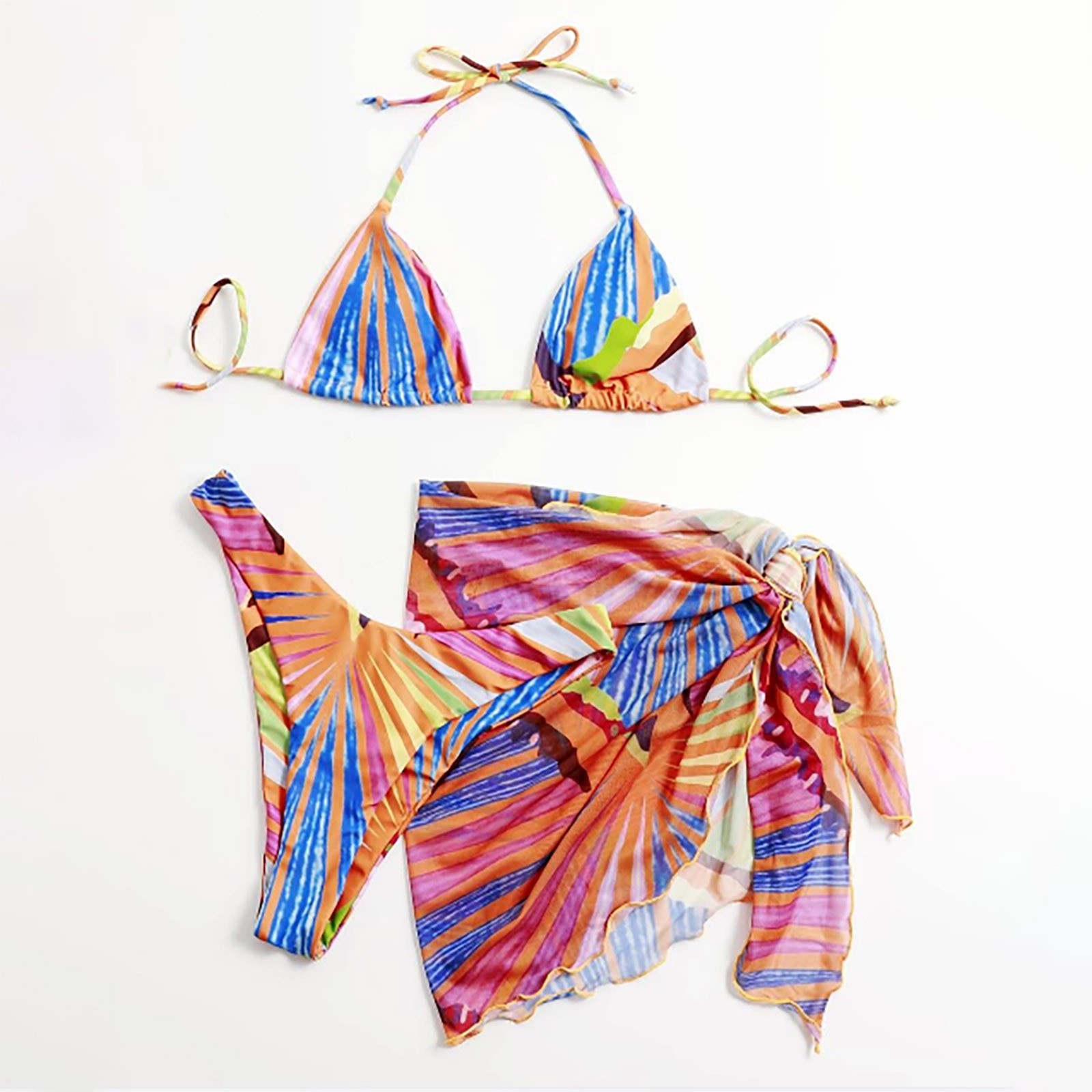 Бикини Лето Мода три части треугольный бикини пляжный купальник юбка бикини