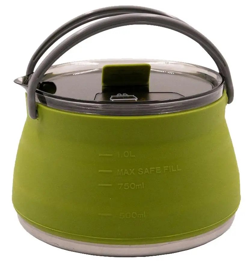 Чайник Tramp - практичная, удобная походная модель, выполненная из термостойкого пищевого силикона со стальным дном. Широкое горлышко чайника позволяет использовать его не только для кипячения воды и заваривания чая, но и в качестве котелка для приготовления еды. Прозрачная полипропиленовая крышка для контроля нагрева жидкости и ускорения времени закипания. Дужки дополнительно фиксируют крышку при наливании и не занимают дополнительного объёма в сложенном состоянии.