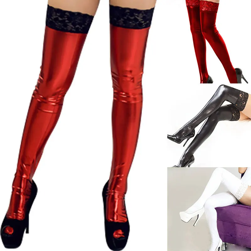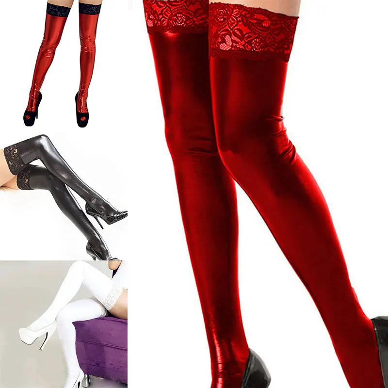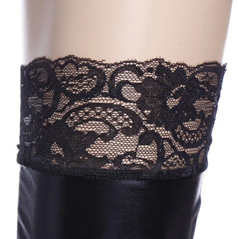 Упаковочный лист: женский с кружевной отделкой, кожаные чулки, сексуальные, выше колена, высокие носки X1 Pair