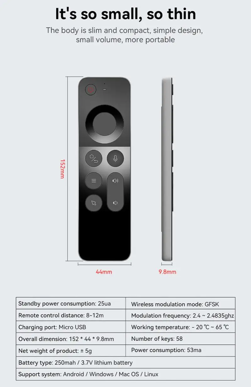 Он может предоставить людям уникальный и способный инструмент для управления их ПК, smart TV, Android TV Box, медиаплеер, телеприставка, просто перемещая его прямо в воздух.