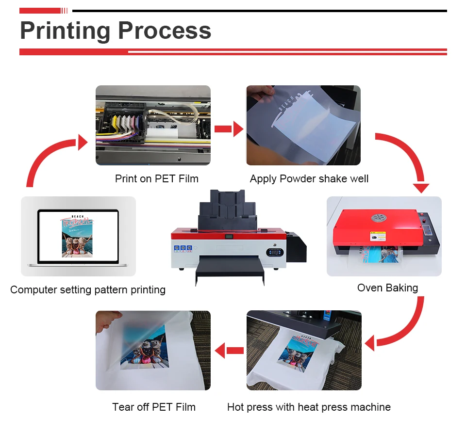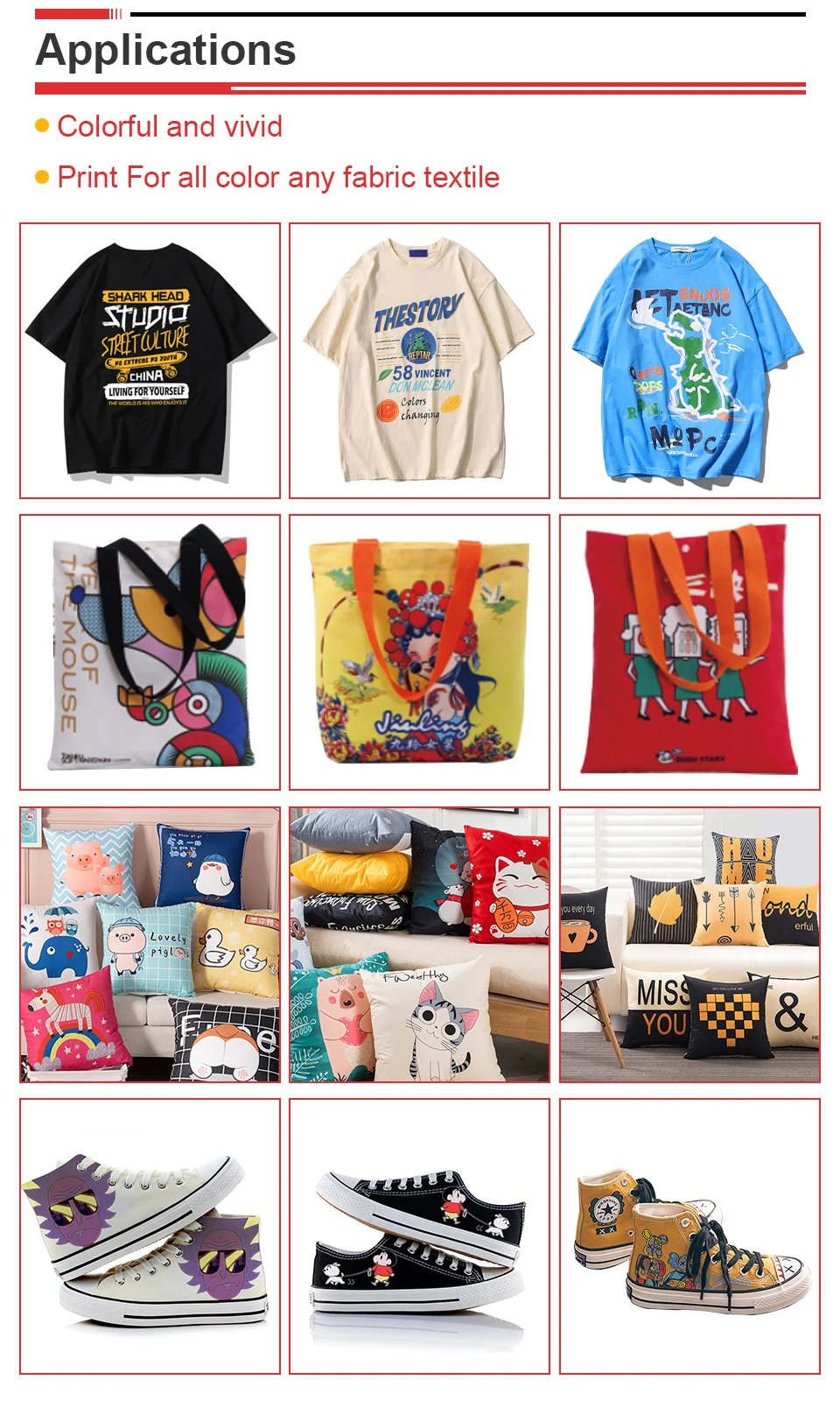 Цифровая переводная пленка является новейшим методом в мире цифровой печати. Благодаря этому методу DTF футболки легко печатаются. Кроме того, текстура печати очень прочная и эластичная, потому что материал чернил изготовлен из пластика, благодаря клеящему клею или порошкообразной муке прикрепить распечатку из пленки к материалу футболки, принт плотный, без пористой ткани и выглядит солидным. Более подробную информацию, пожалуйста, свяжитесь с нами.