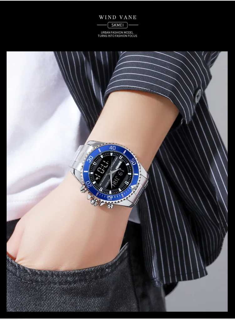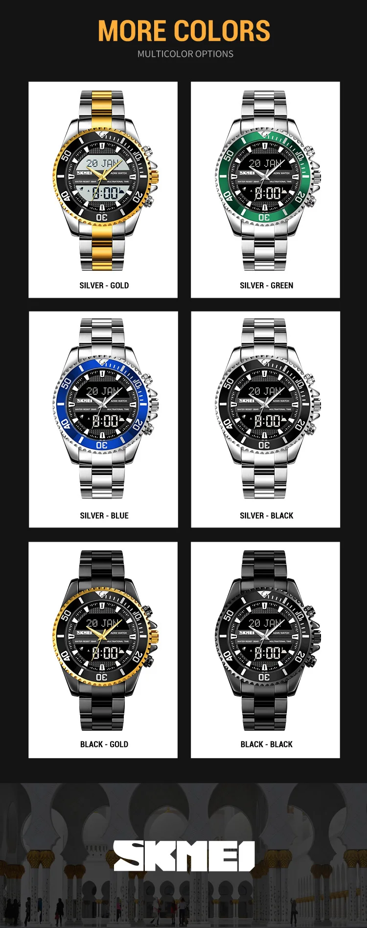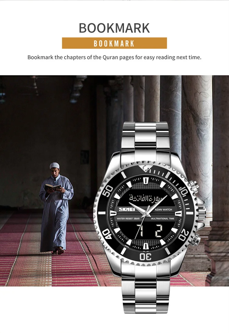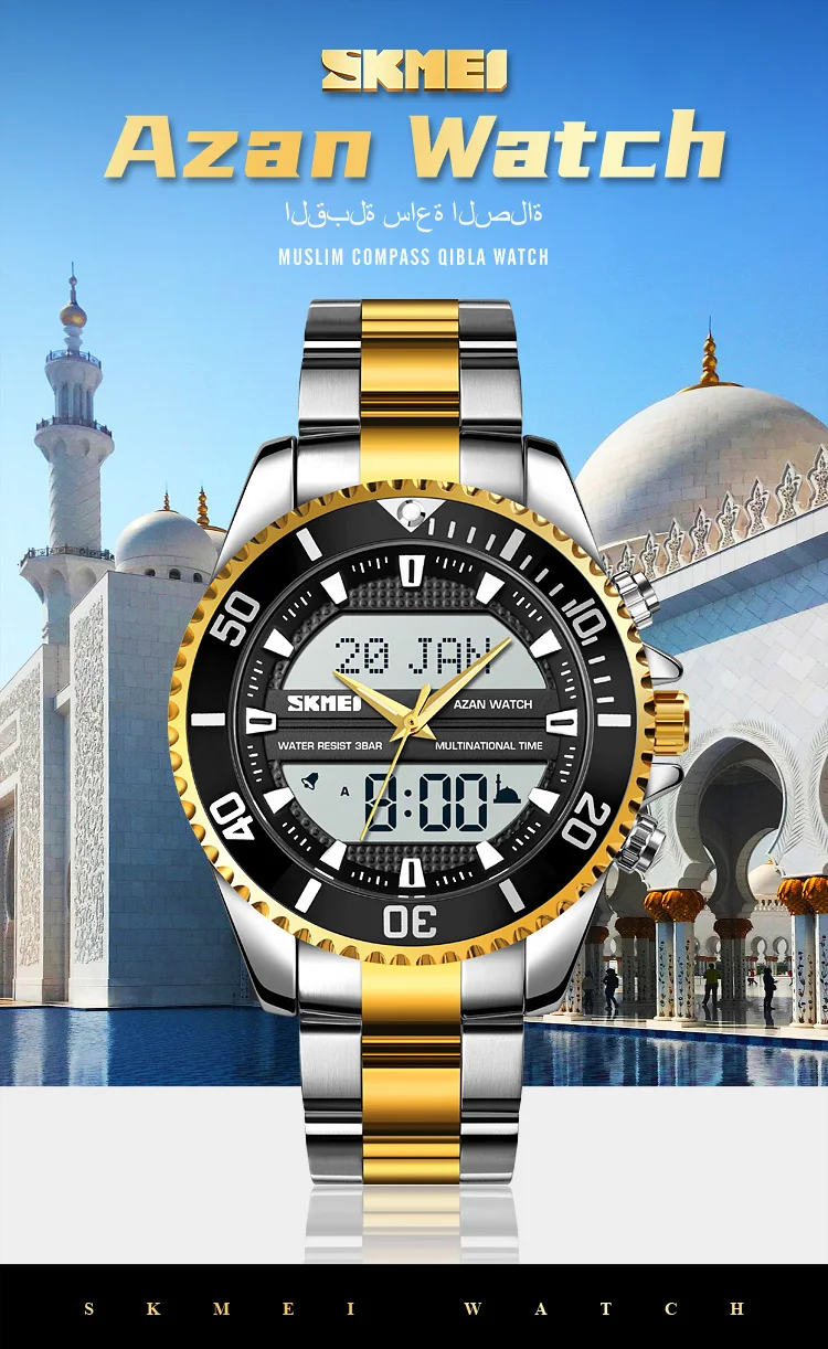 SKMEI Dual Movement Muslim Azan Clock Men Watch for Prayer with Qibla Compass Adhan Alarm Hijri Islamic Wristwatch reloj hombre 1896