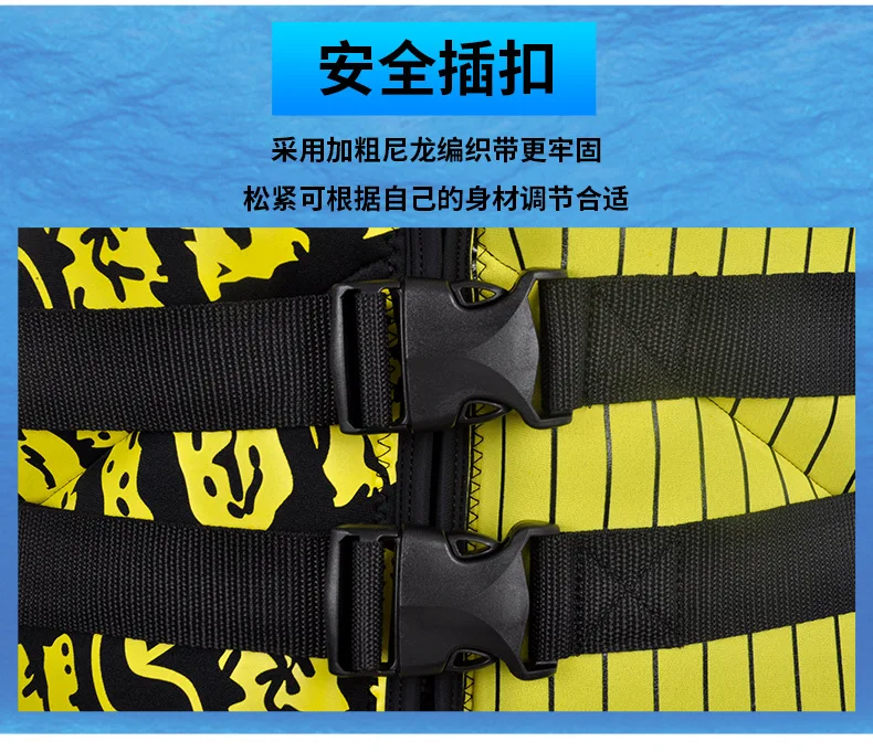 Безопасная Пряжка сделана из которого является равномерным материалом международных спасательных курток. Он толще и прочнее, и его длину можно регулировать.