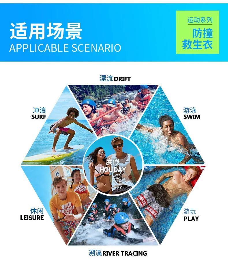 Области применения: Морская рыбалка, плавание, рафтинг, обратная плавающая, серфинг, катание на лодках, Рок Рыбалка, моторные лодки, борьба с наводнениями и т. Д.