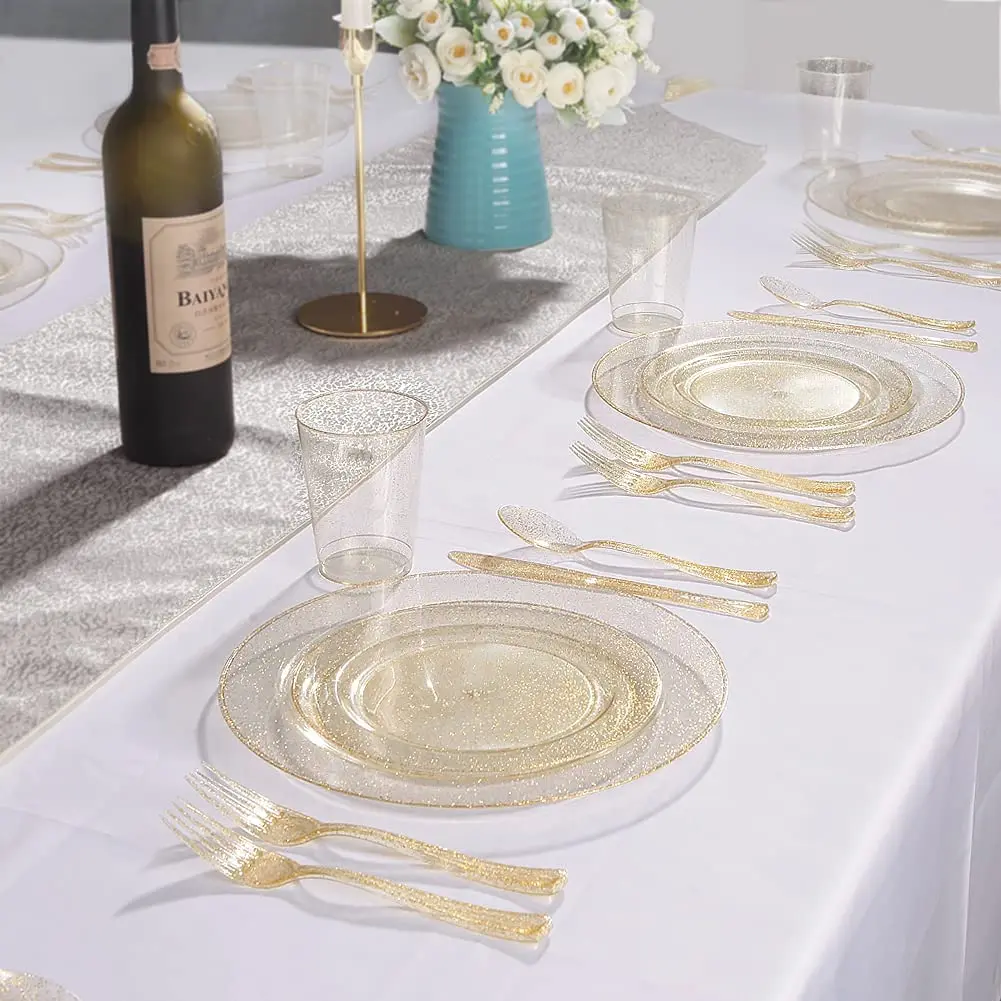 Идеально подходит для торжеств: одноразовые десертные тарелки и блестящие вилки с красивым цветом и дизайном отлично подходят для Дня матери, свадебного торжества, подачи закусок, салатов, десертов и особых мероприятий, где вы хотите элегантный и причудливый вид с удобством одноразового