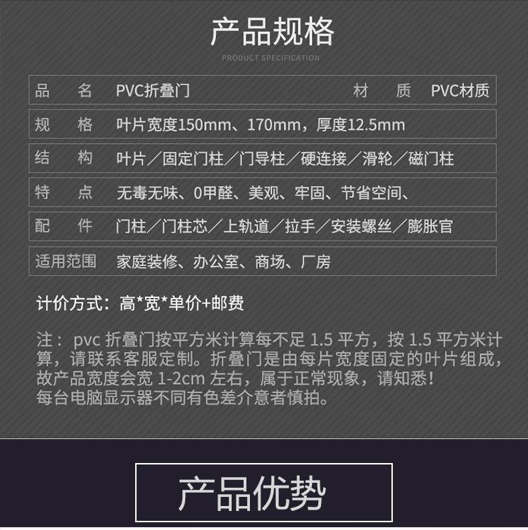 Если вы разместите заказ 1 шт/㎡, это бесполезный заказ для нас. Цена за 1 квадратный метр, который занимает дверь. Если площадь вашей двери составляет от 1 до 2 квадратных метров, вам необходимо разместить заказ на 2 квадратных метра. Если площадь вашей двери составляет n ~(n + 1) квадратных метров, вам нужно разместить заказ n + 1 квадратных метров (n≥ 1). Вы также должны указать нужную высоту и ширину двери.