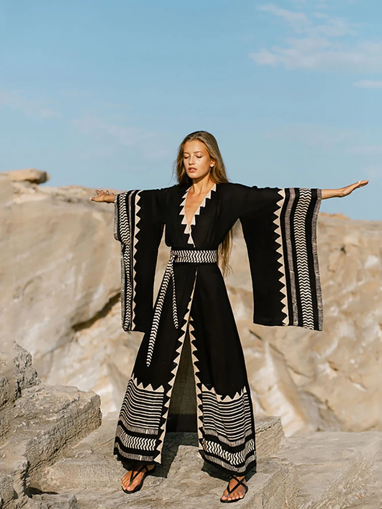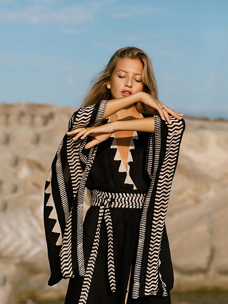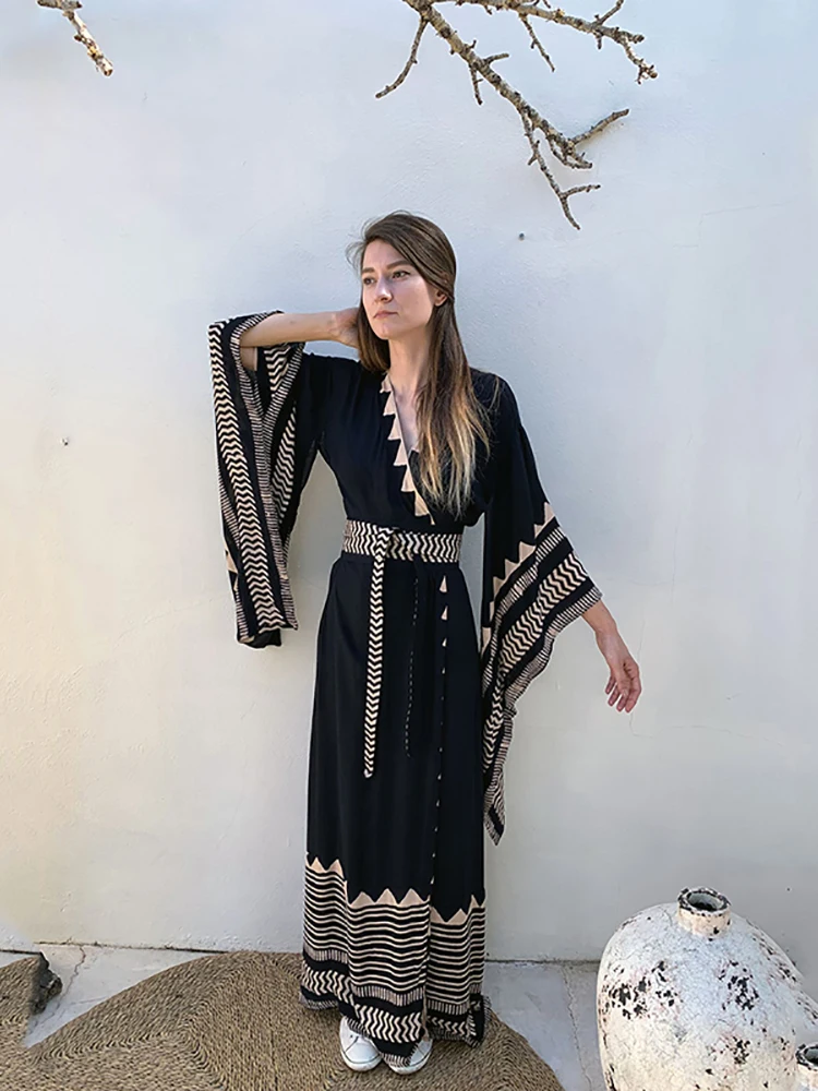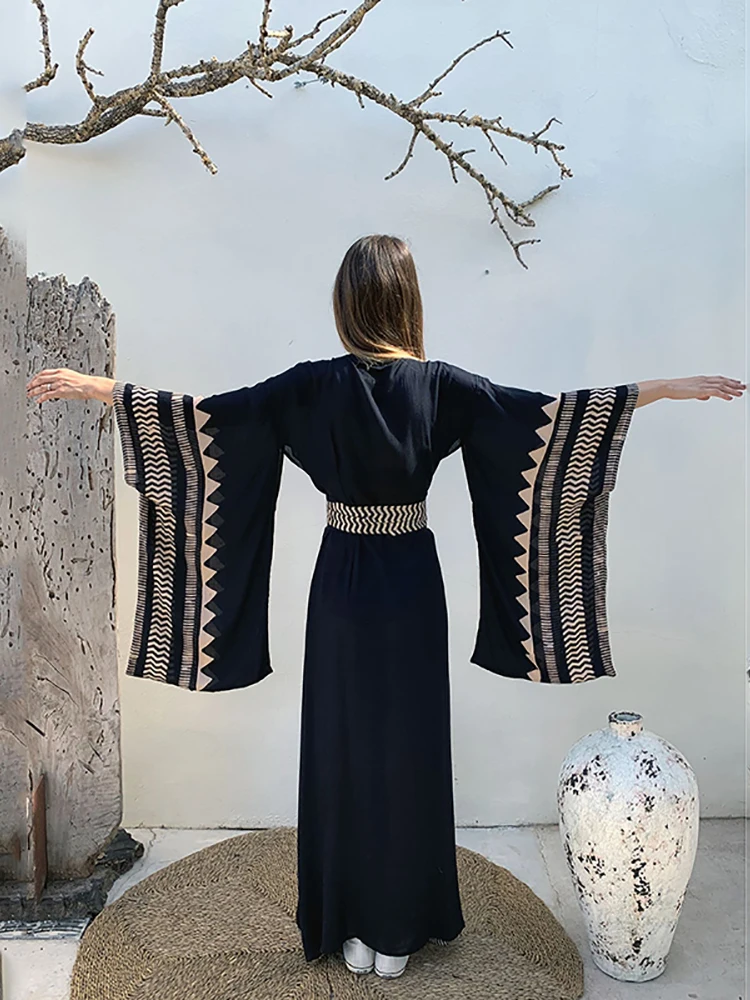 Один размер: плечо 75 см, бюст 120 см, длина 130 см, рукав 37 см