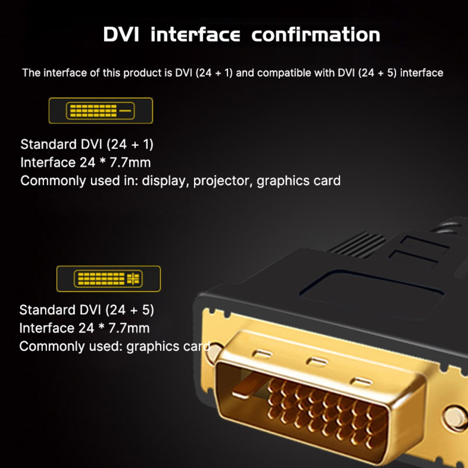 Подключите устройство DVI к панельным дисплеям, цифровым ЭЛТ-дисплеям, проекторам, HDTV и видеопроекторам, включая DFP и ЖК-экраны Высокоскоростной цифровой скорость передачи данных до 9,9 Gbits/сек Ферритовый сердечник устраняетЭлектромагнитныйПомехи Кабель для цифрового монитора/кабель для DVI-D с двумя звеньями 6 футов Позолоченный разъем DVI-DVI (24 + 1) для оптимальной проводимости. Максимальное разрешение до 1920x1080. Не поддерживает 144 монитор ГцХарактеристики: