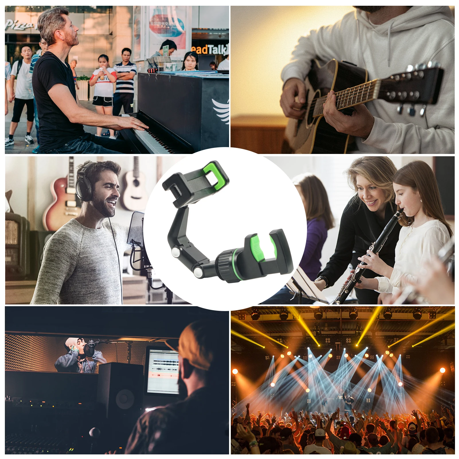 Отрегулируйте ручку, чтобы зафиксировать и закрепить держатель телефона на гитарной головке, подставке для микрофона, музыкальной подставке, рабочем столе и т. д.