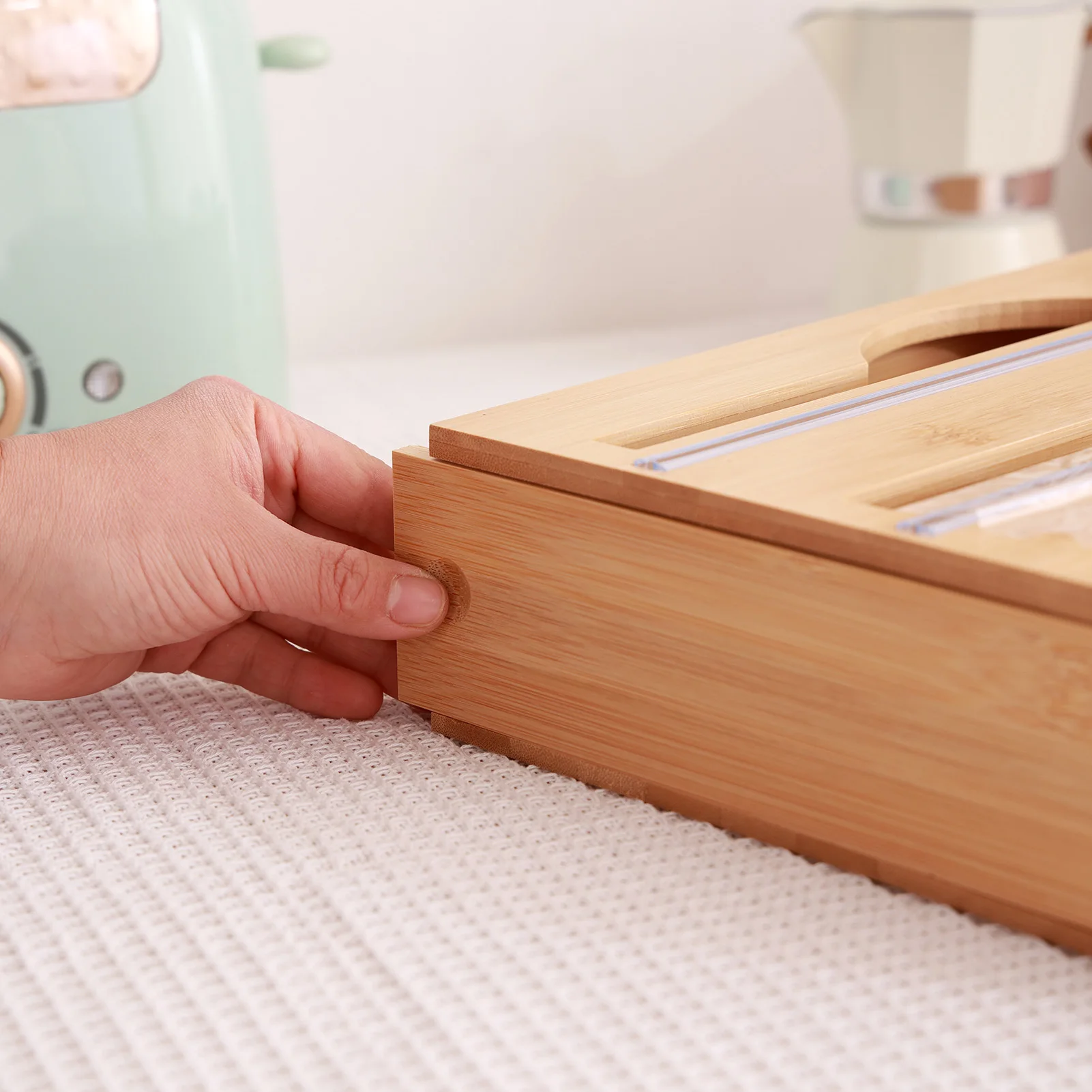 3. Легко чистить: держатель для кухонной пленки легко удерживает вашу пищевую пленку в чистоте. Если поверхность держателя испачкается, вы можете протереть ее влажным упаковочным листом, не нужно беспокоиться о грязи.