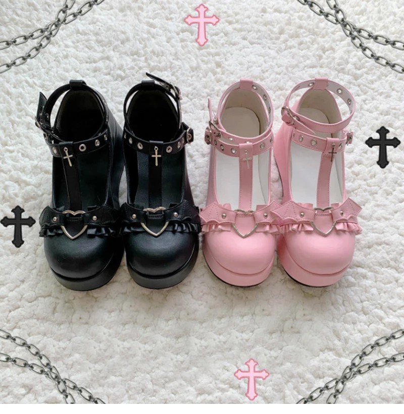 Обувь в стиле «Мэри Джейн»; Милые украшения в виде цветов; Женские туфли с пряжкой в форме сердца с ремешком в виде буквы т на платформе обувь на каблуках в стиле «лолита»; Обувь для костюмированной вечеринки в стиле «панк» Туфли в готическом стиле размера плюс 43