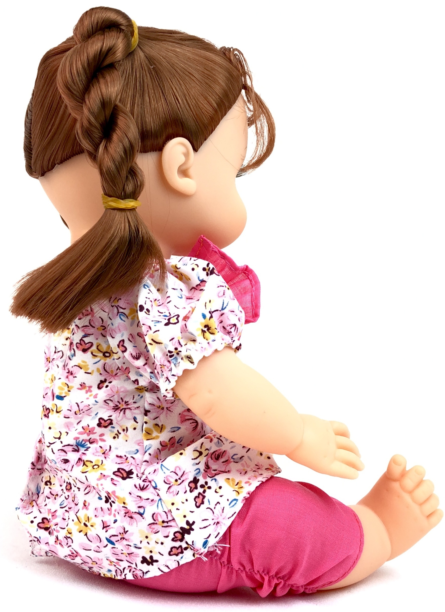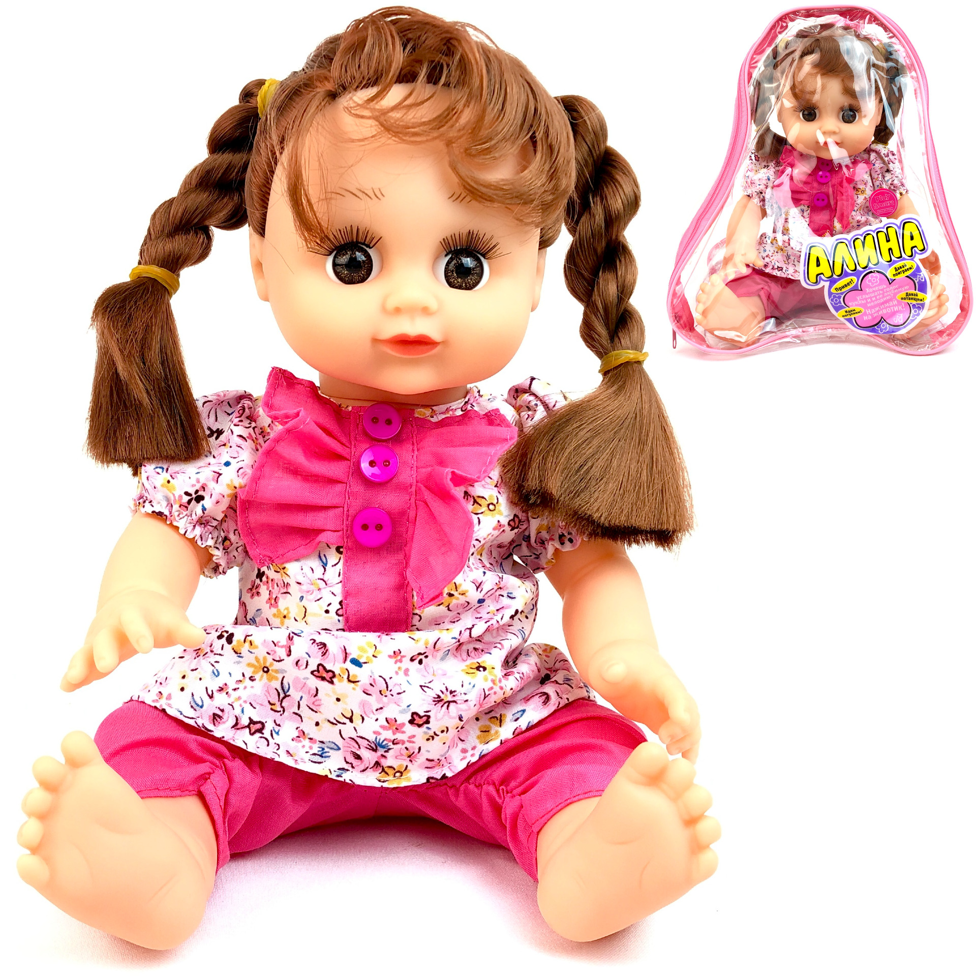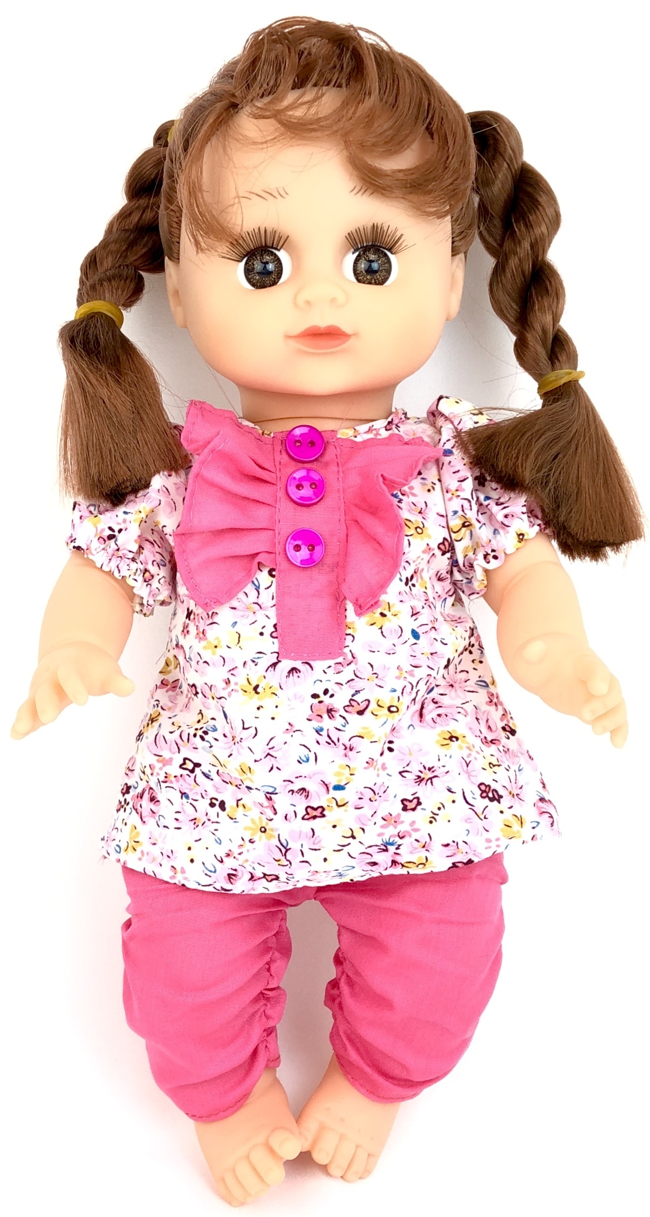 Игрушка может говорить и петь. Достаточно нажать на животик куклы и последуют фразы: