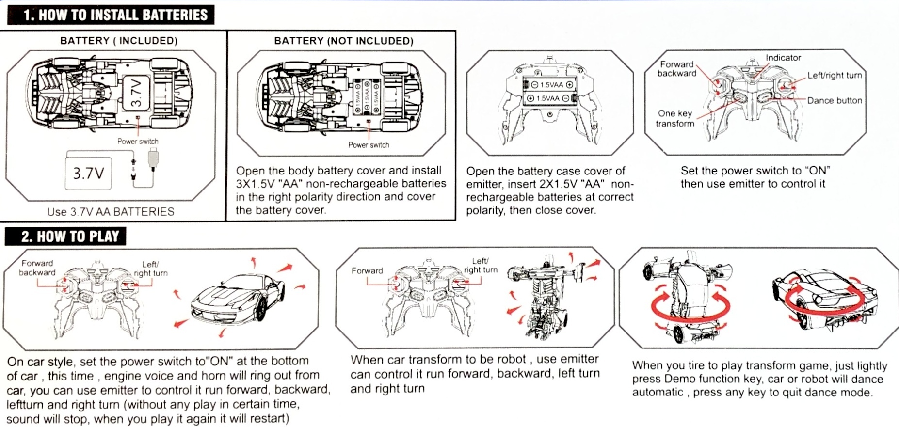 Игрушка работает от перезаряжаемого Li-Ion аккумулятора объемом 3.7V 14500/500 mAh, который входит в комплект. Время зарядки аккумулятора - 90 минут. Время работы аккумулятора после полной зарядки - 15 минут.