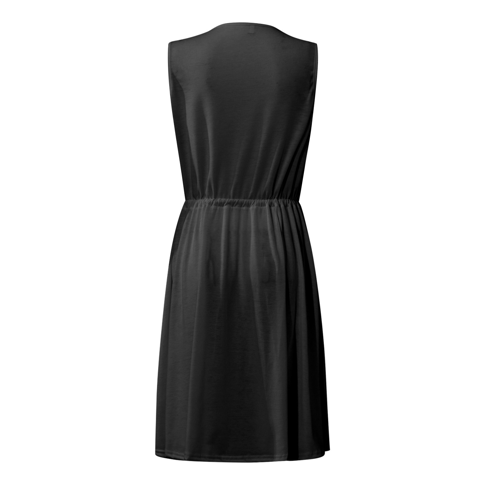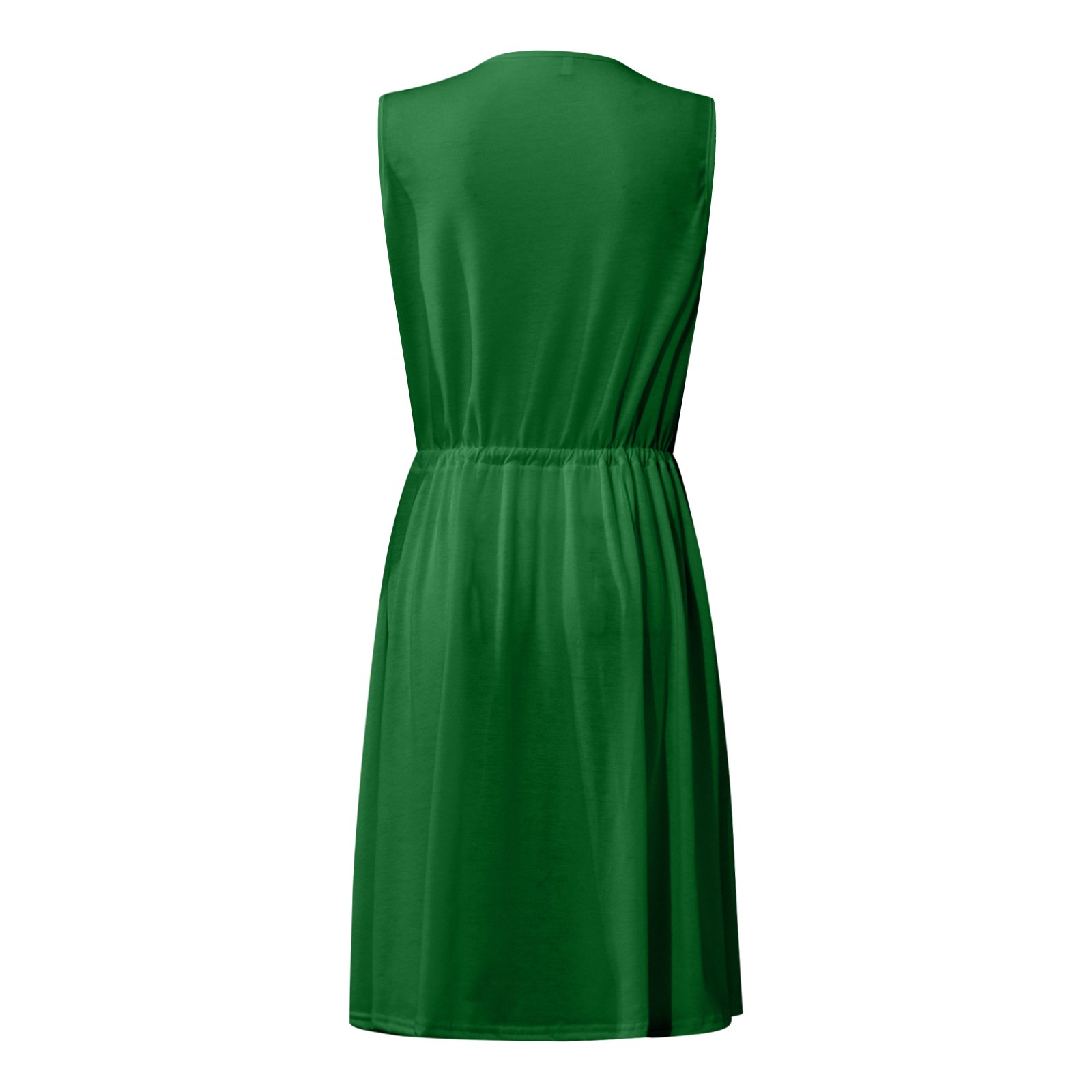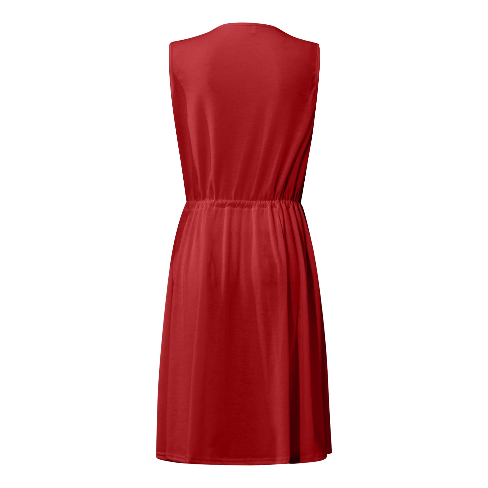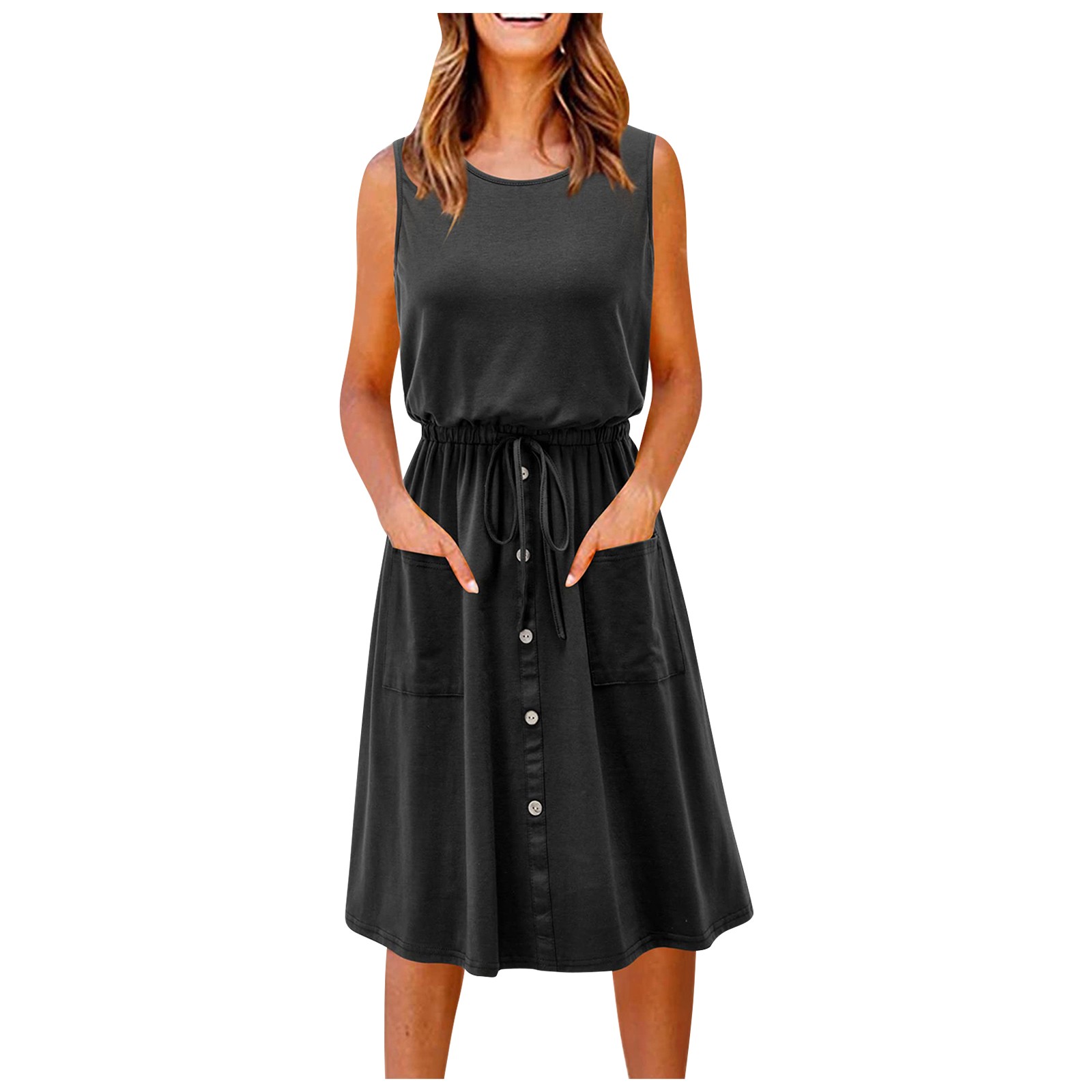 Women's Casual Fashion Solid Color Round Neck Drawstring Sleeveless Dress