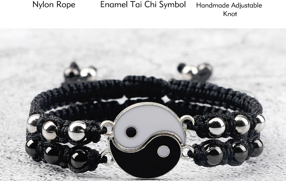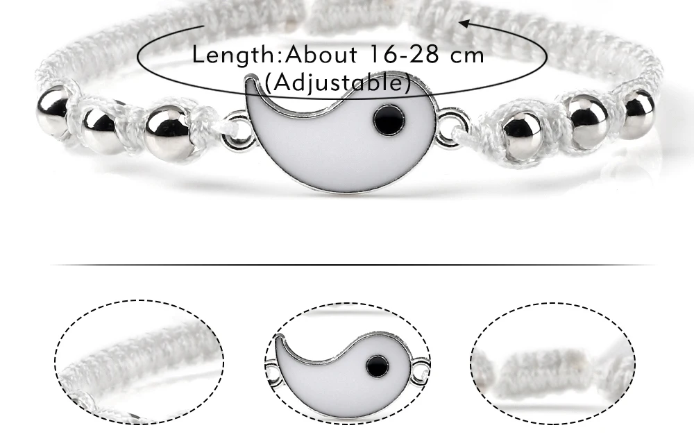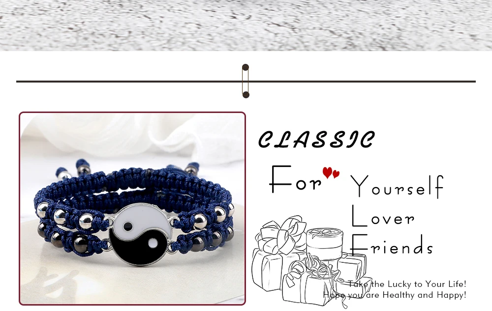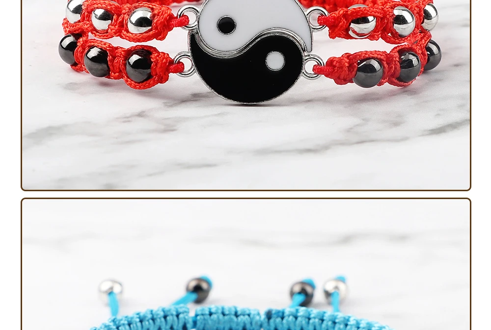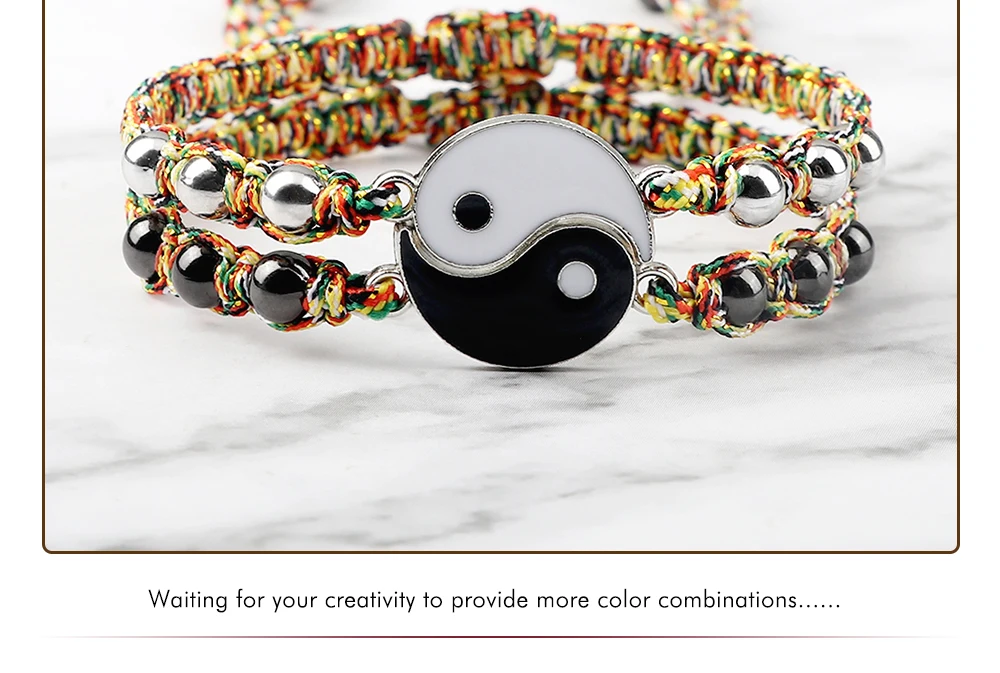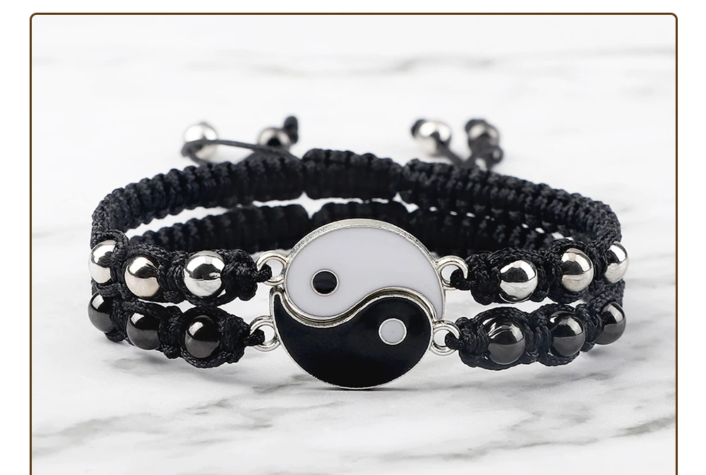 Прямая поставка, 2 шт./компл., браслет для пары Tai Chi Yin Yang, регулируемый размер, сочетающийся с любовником, черно-белые плетеные браслеты и браслеты, подарок для друзей, мужские ювелирные изделия, Pulseira