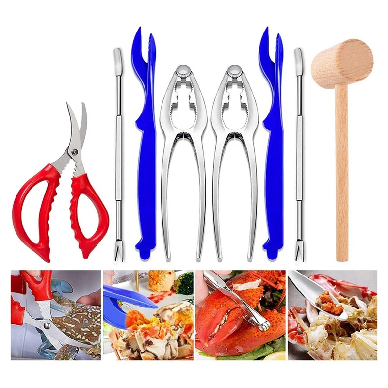 Heavy Duty and Durable: Solid die-cast zinc alloy crackers with jagged teeth and durable hinges to take significant pressure; High-grade double ended stainless steel forks; Stainless steel shellfish scissors are sharp to cut through tough, shell of crab and lobster legs and are delicate enough to open up small lobster or shrimp.