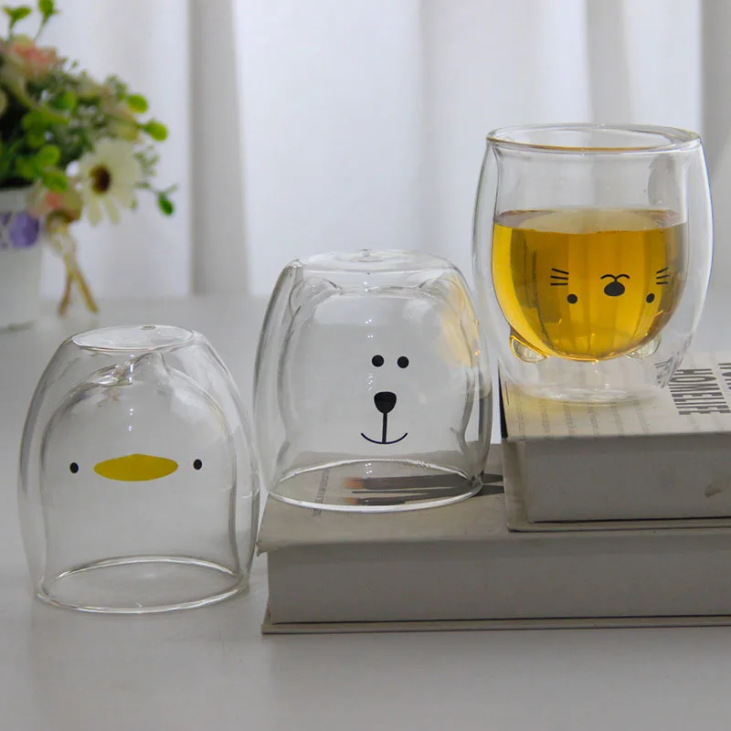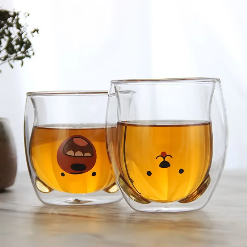 100-200 мл прозрачная двойная стеклянная чашка Милая чашка медведя разнообразие креативных мультяшных соков кофейная кружка для молока лучший подарок
