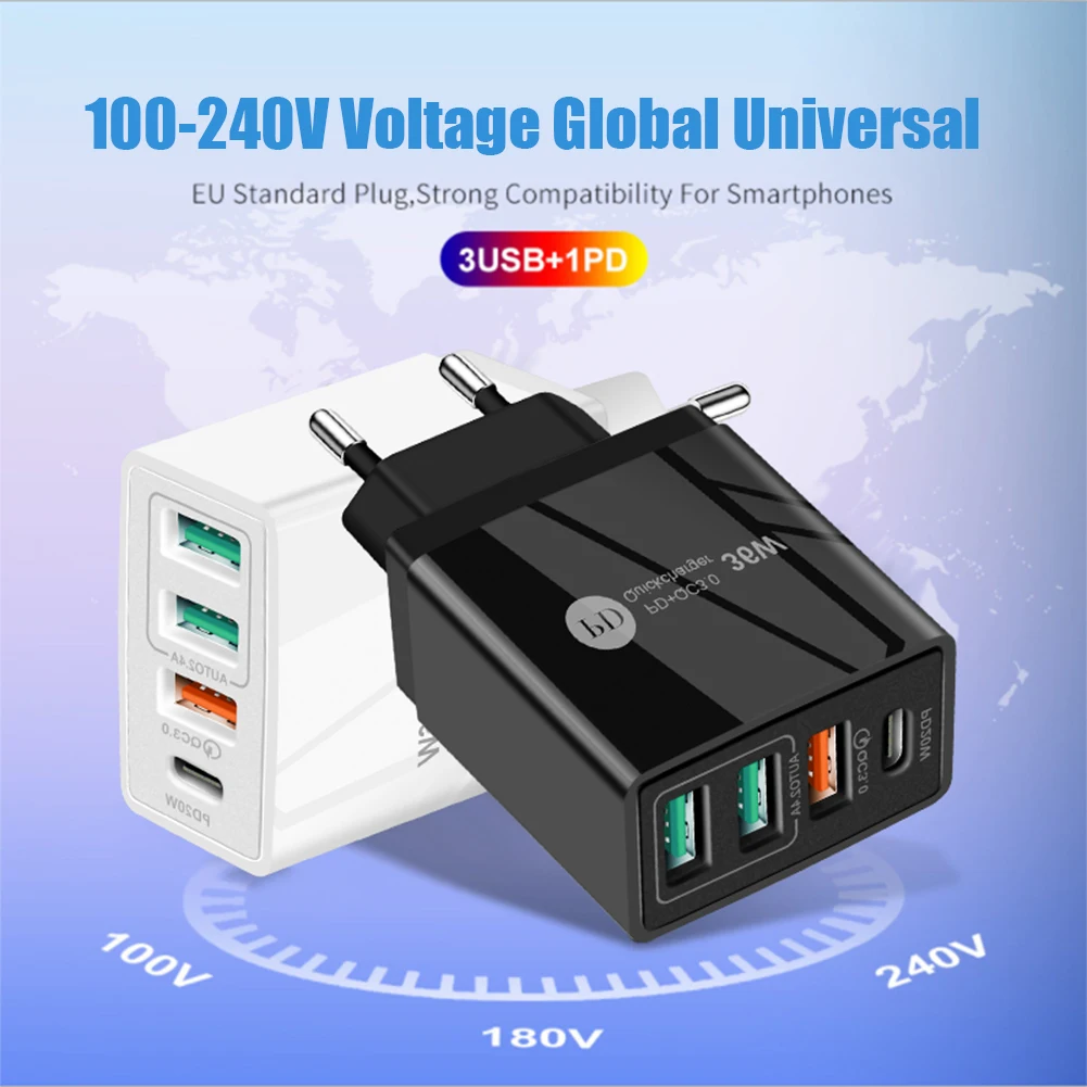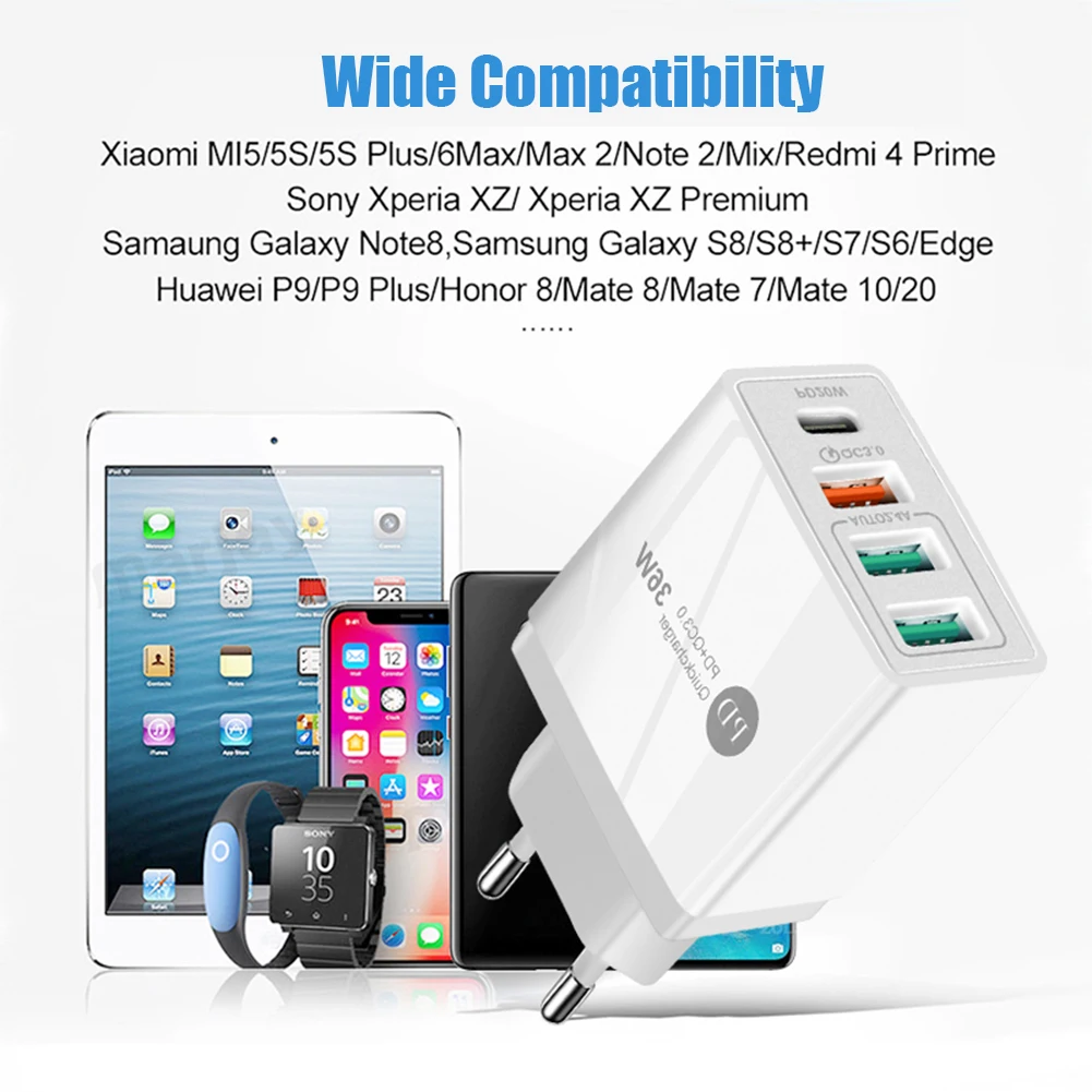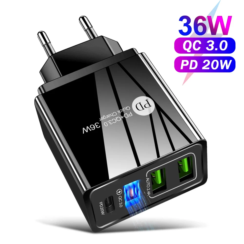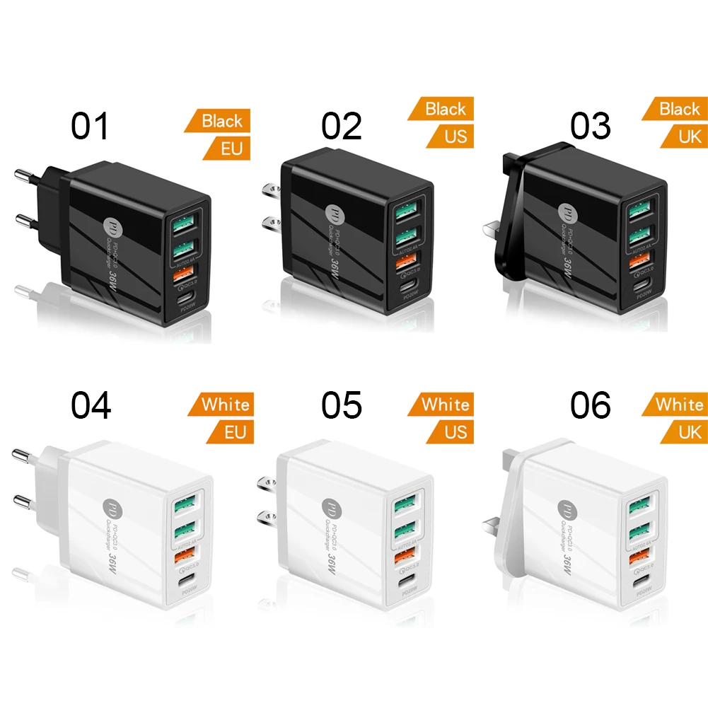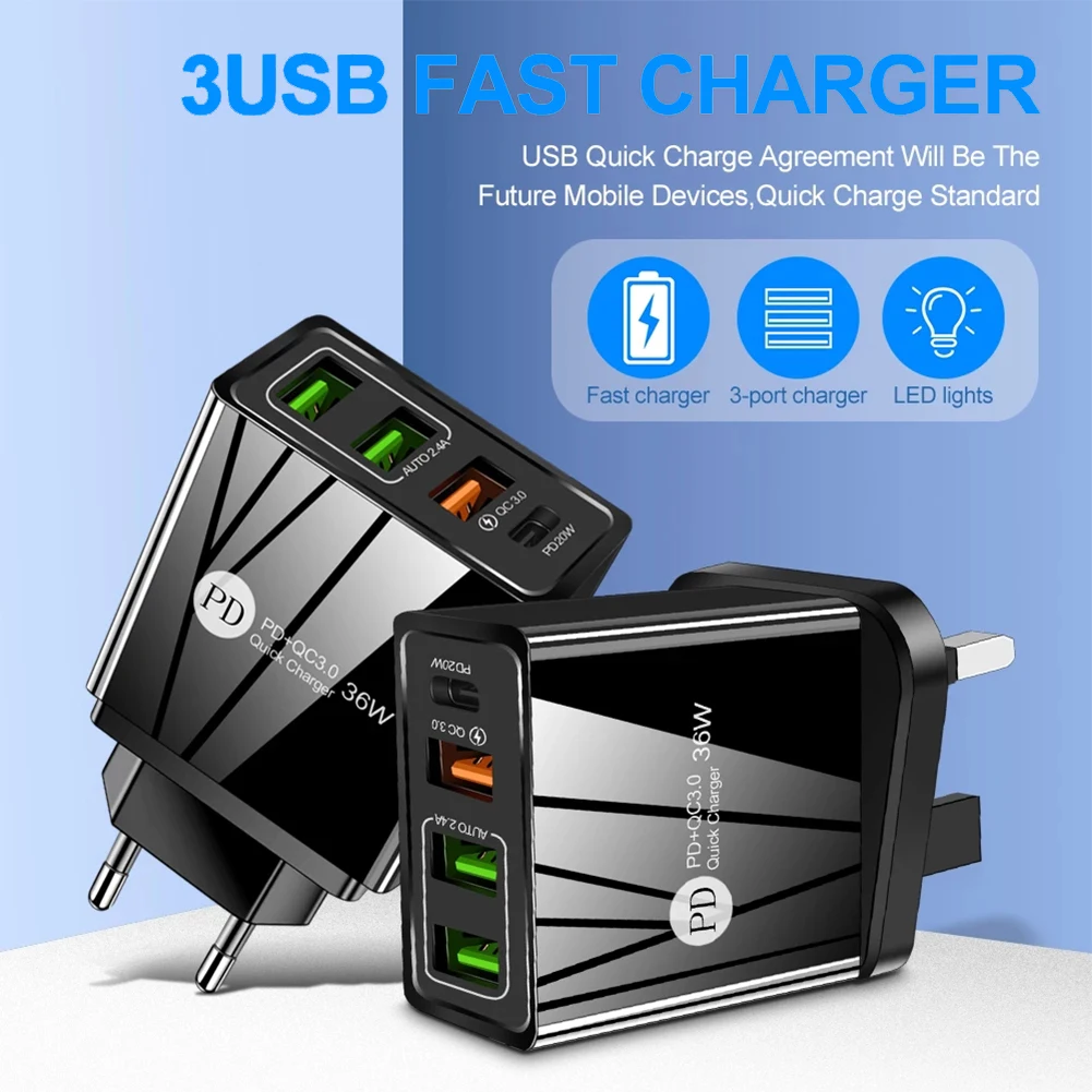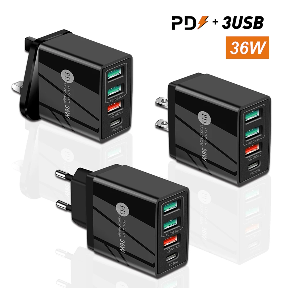 4 порта 36 Вт мобильный телефон зарядное устройство 2.4A PD 20 Вт Быстрая зарядка 3,0 USB Type C настенный зарядный адаптер для iPhone 13 12 11 Xiaomi Samsung