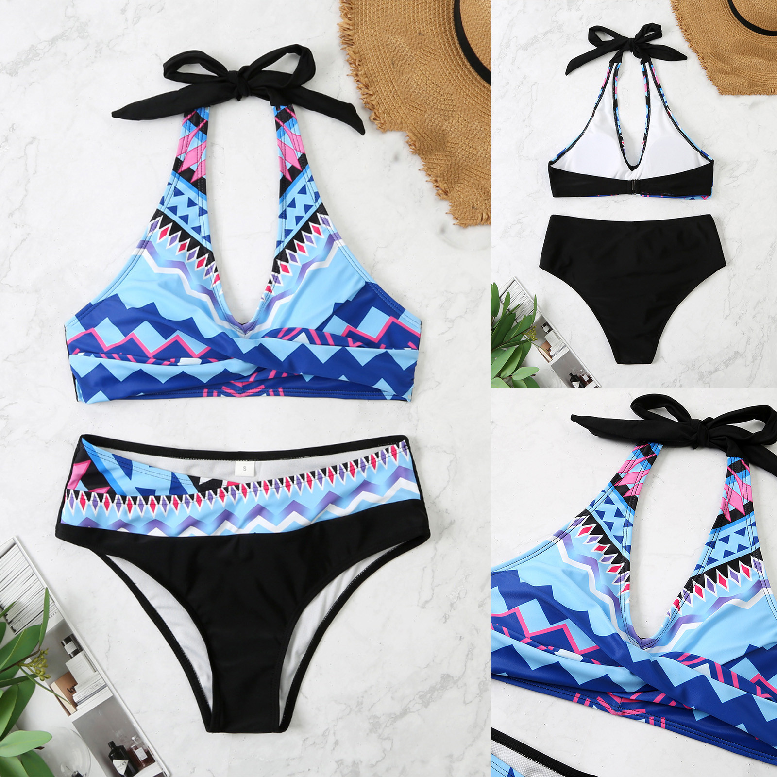 Модный женский раздельный купальник, этнический купальник бикини с принтом, повседневный купальник