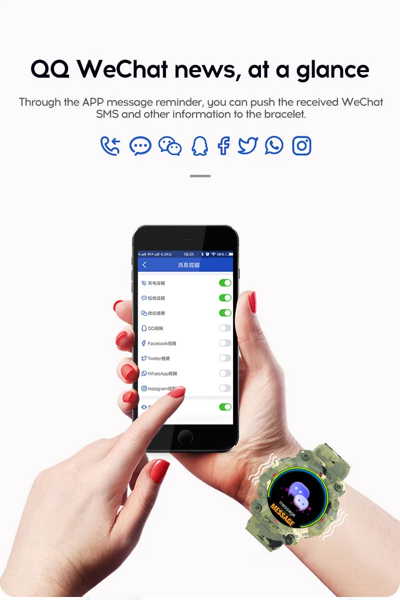 Информация Push напоминание (SMS/QQ/WeChat/Skype/Facebook/Twitter/Line/WhatsApp)