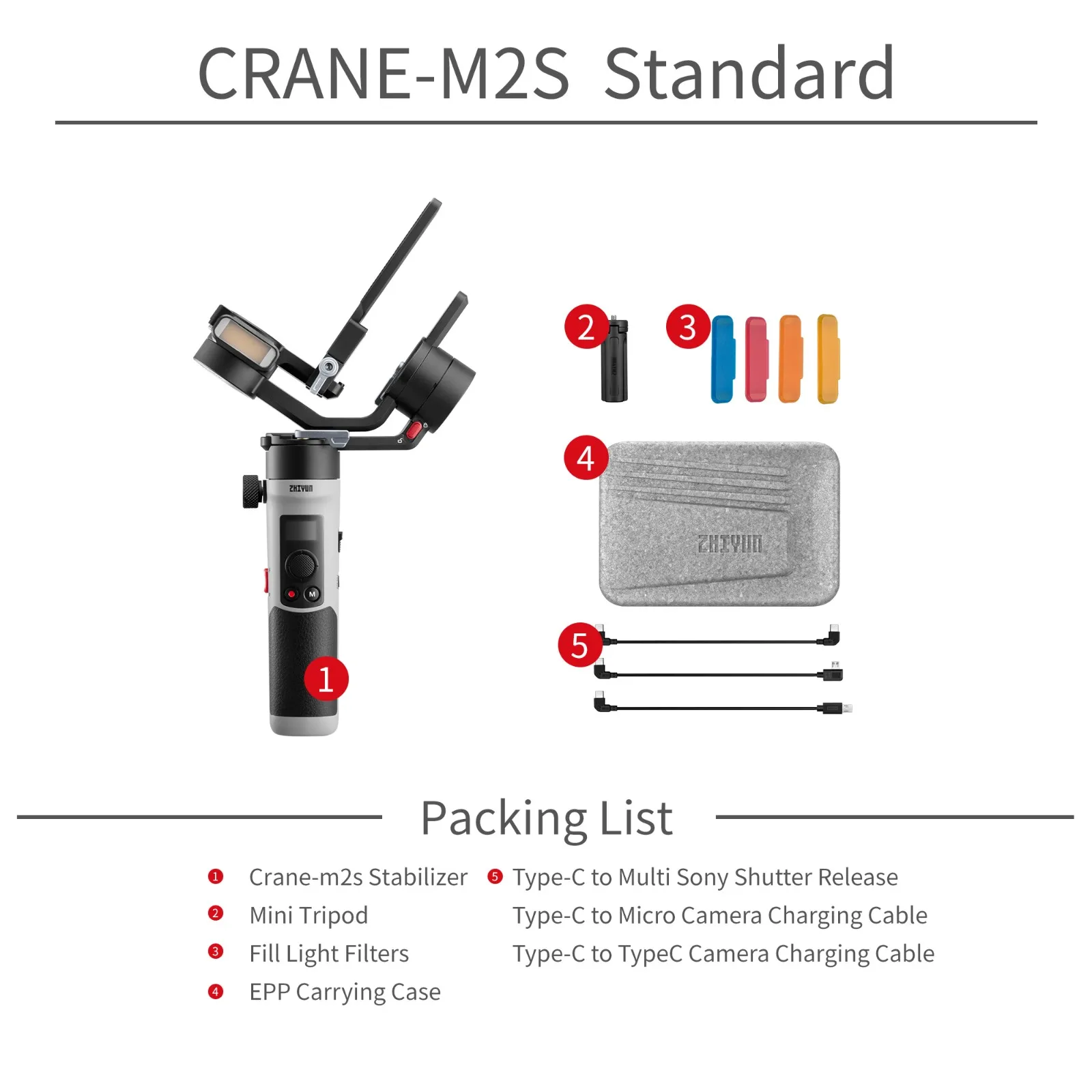 Zhiyun Crane M2 S комбинированный карданный 3-осевой Стабилизатор Для беззеркальных аксессуары для экшн-камеры цифрового однообъективного зеркального фотоаппарата смартфона iPhone 13/12 Pro Max