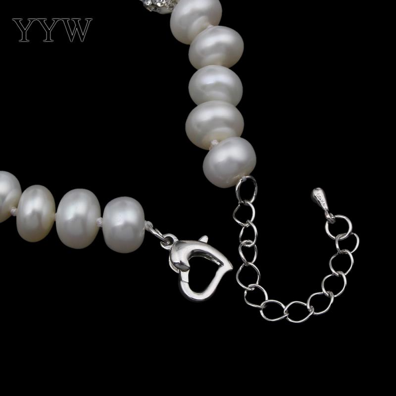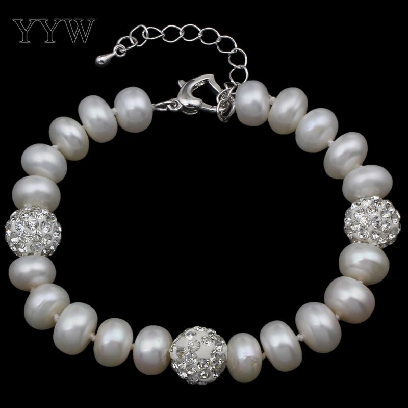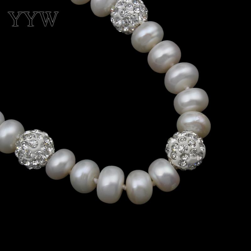 Браслет из пресноводного культивированного жемчуга с Стразы естественный белый размером 8-9 мм, Кнопка пресноводный жемчуг, клей, с 4cm наполнитель цепи