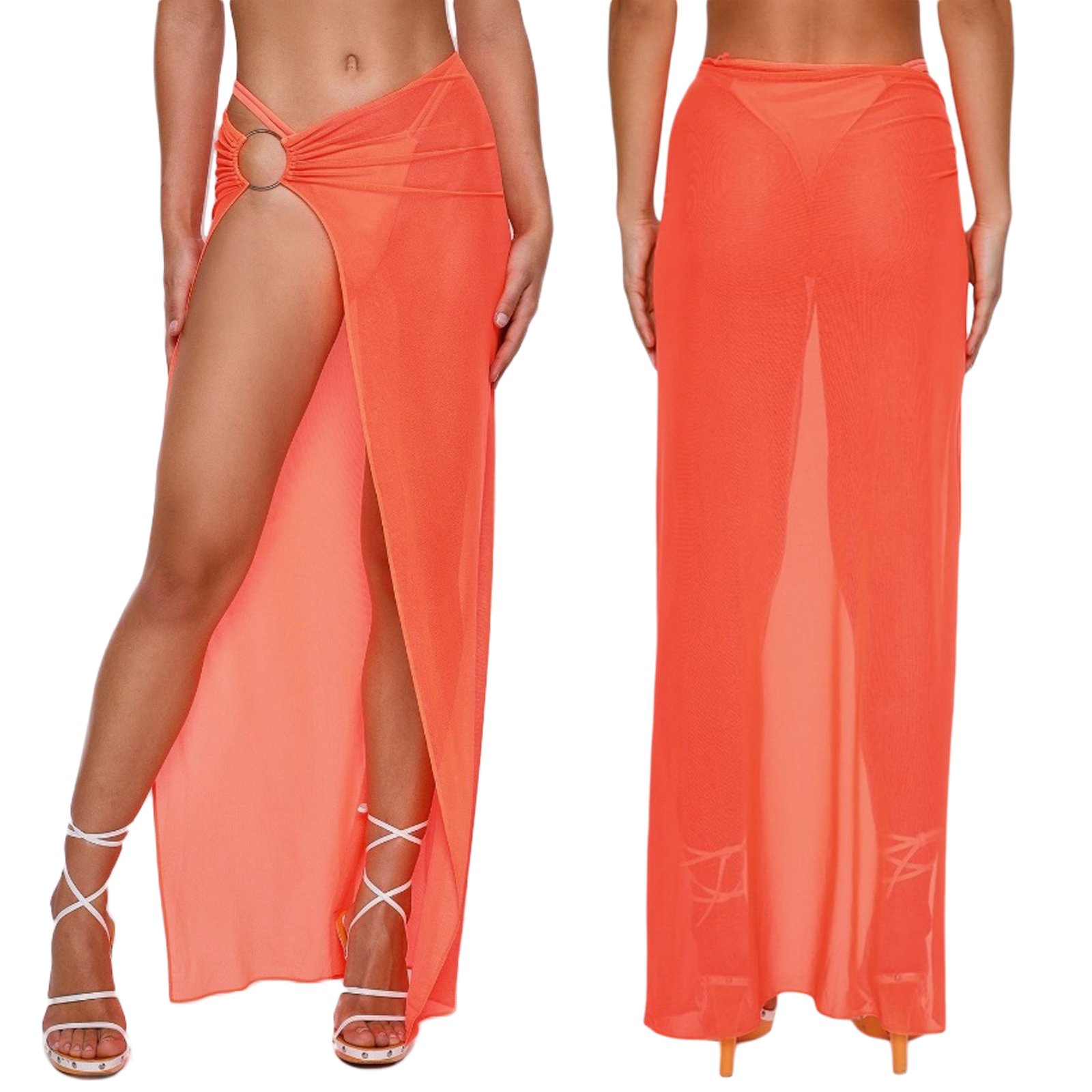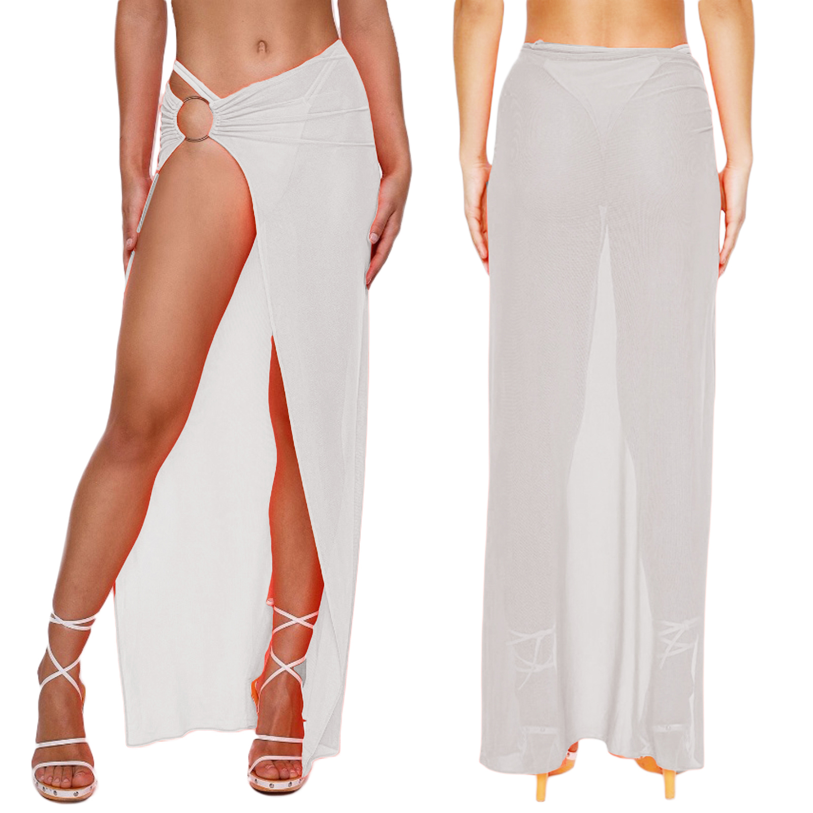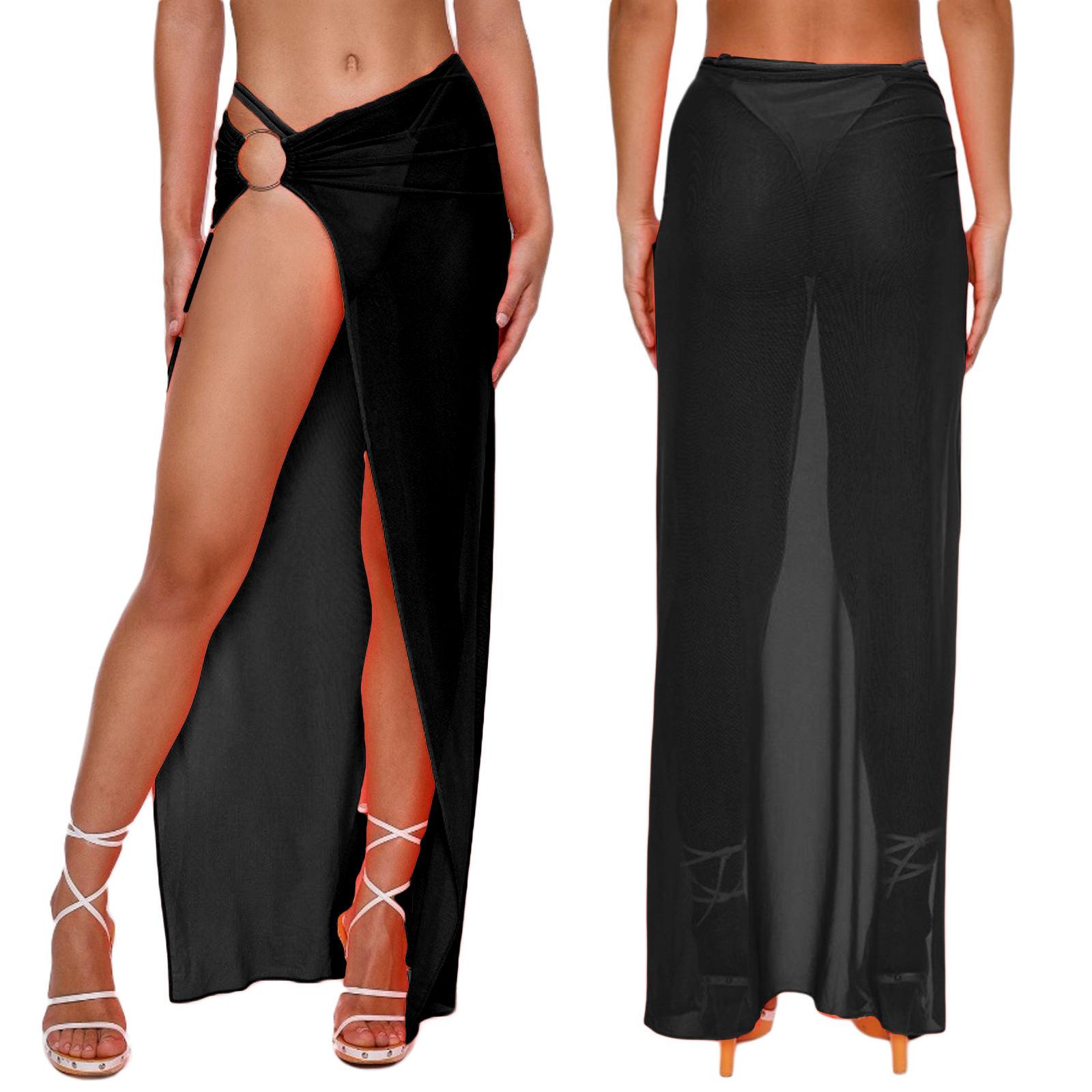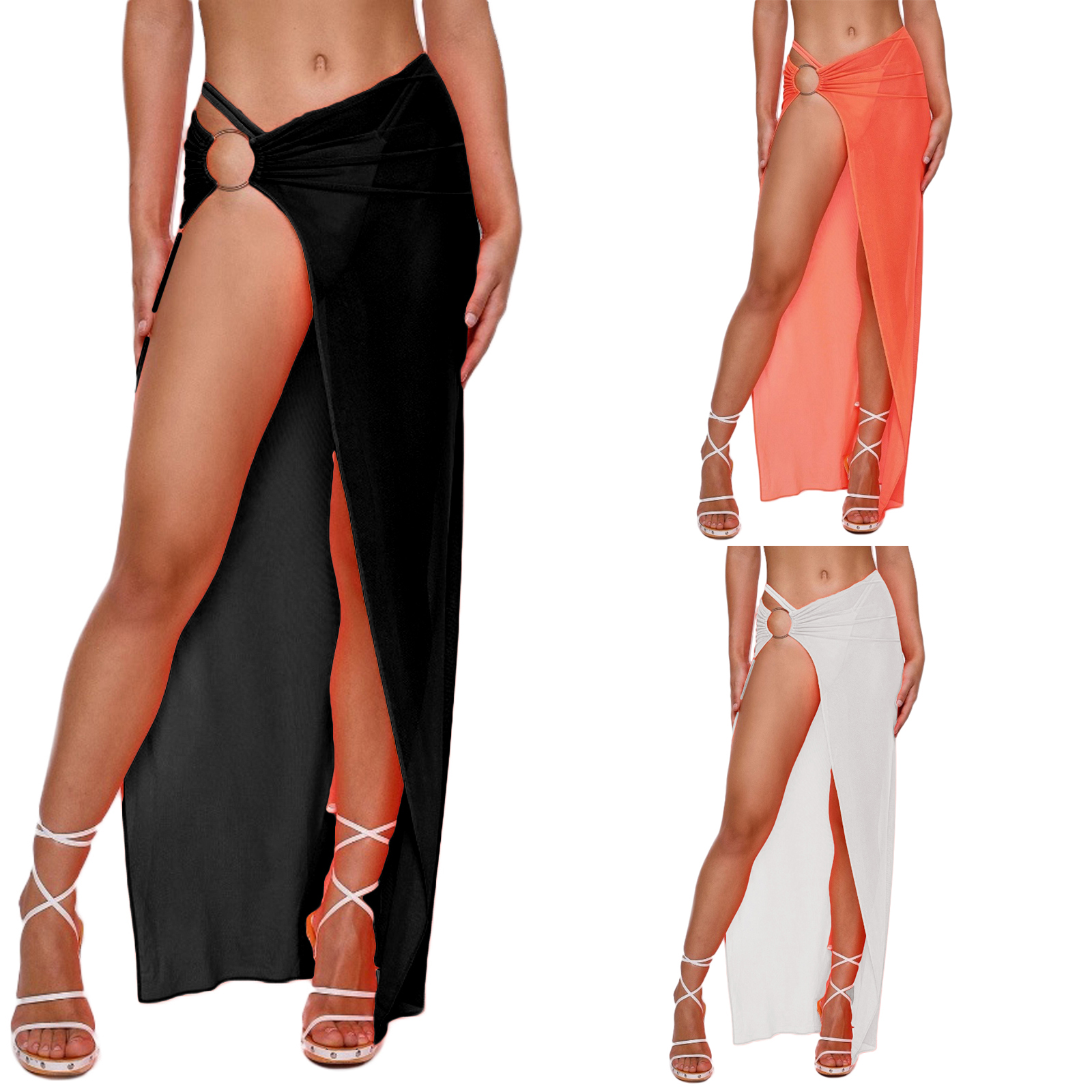 Женское длинное платье саронг, сетчатая пляжная юбка, однотонное бикини с кольцом, Прозрачное мини-платье
